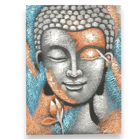 Ten wyjątkowy obraz to artystyczna interpretacja spokoju i harmonii, wykonana ręcznie przez rzemieślników na indonezyjskiej wyspie Bali. Kompozycja przedstawia bliskie ujęcie twarzy Buddy w stanie głębokiej medytacji, wzbogacone o subtelny kwiat u dołu płótna. Największym atutem obrazu jest jego unikalna, ziarnista tekstura, która nadaje płótnu wyraźną trójwymiarowość.