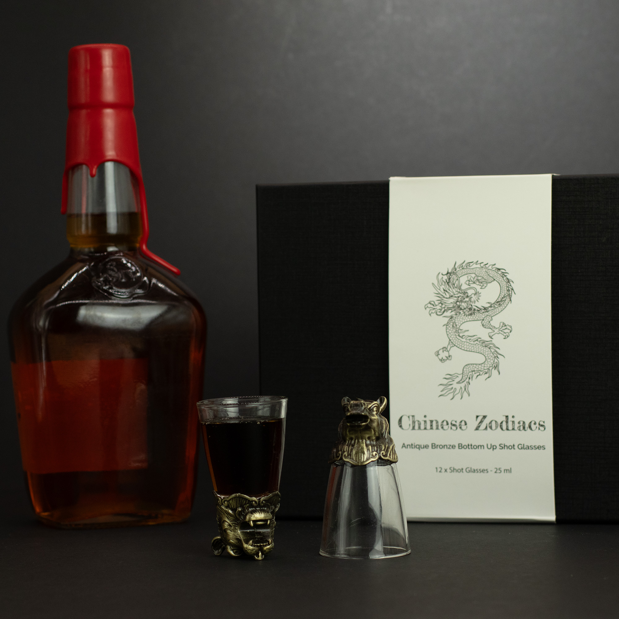 Po odwróceniu kieliszka na wierzch wysuwa się misternie odwzorowana głowa zwierzęcia z chińskiego zodiaku – od Szczura po Świnię. Każdy detal, od uszu po rogi, został dopracowany, by zachwycać zarówno podczas degustacji, jak i jako ozdoba stołu czy barku.