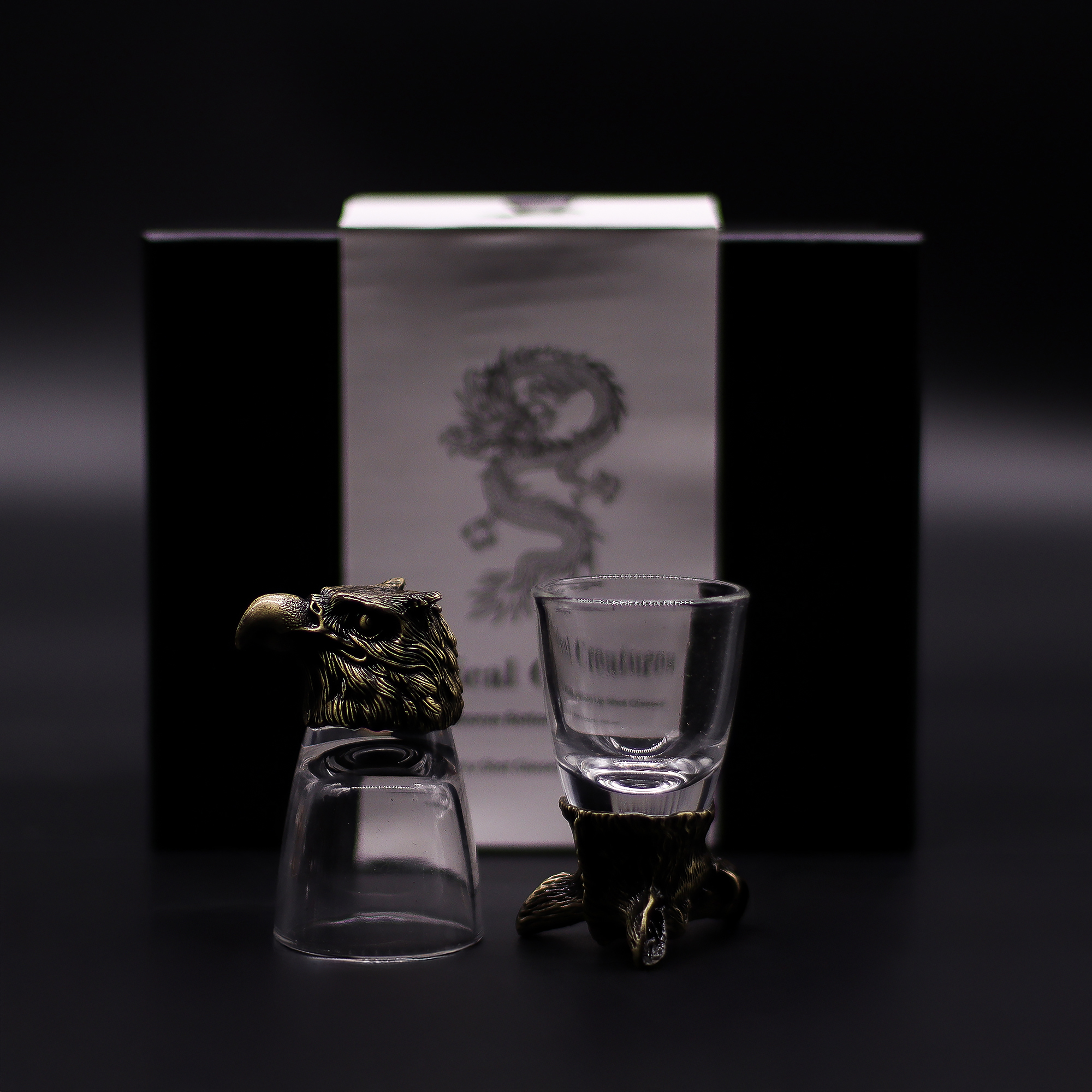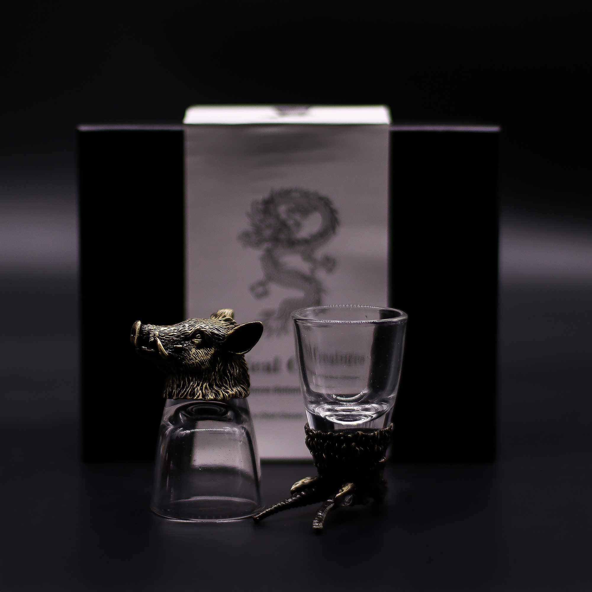 Po odwróceniu kieliszka odkrywa się misternie wyrzeźbiona głowa dzikiego zwierzęcia leśnego – od lisa, przez sowę, po jelenia. Każdy detal został dopracowany, aby zachwycać zarówno estetyką, jak i funkcjonalnością.