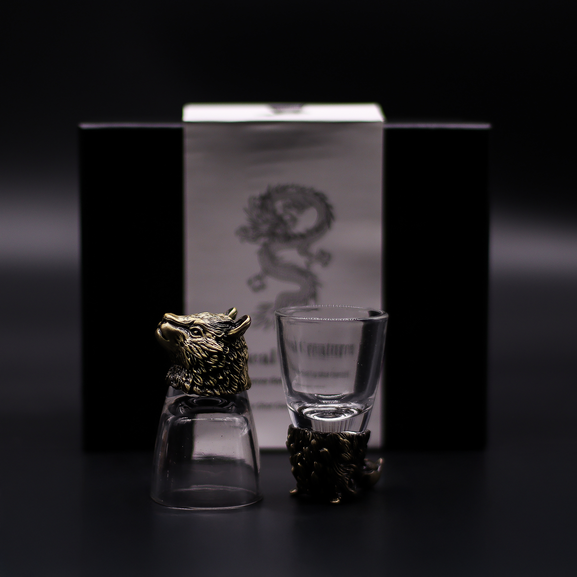 Kieliszki o pojemności 50 ml idealnie nadają się do serwowania większych porcji trunków, degustacji czy wyjątkowych toastów. Ich stabilna forma sprawia, że po odwróceniu stają się praktyczną podstawą, a detale zwierząt pełnią rolę ozdobnego elementu.