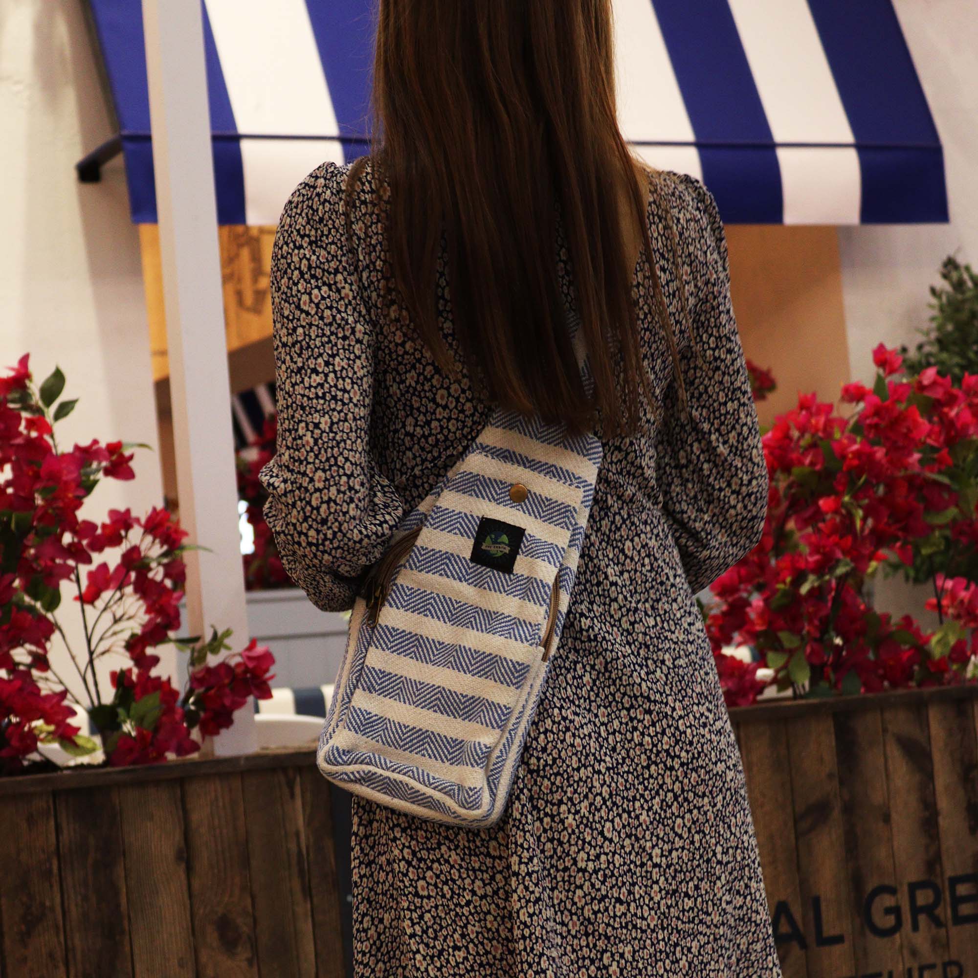 Mini Plecak na Jedno Ramię Bawełniany - Biało-niebieski to idealny wybór dla osób ceniących praktyczne rozwiązania i modny wygląd. Doskonale sprawdzi się jako stylowy dodatek do codziennych outfitów, jak również na weekendowe wycieczki.