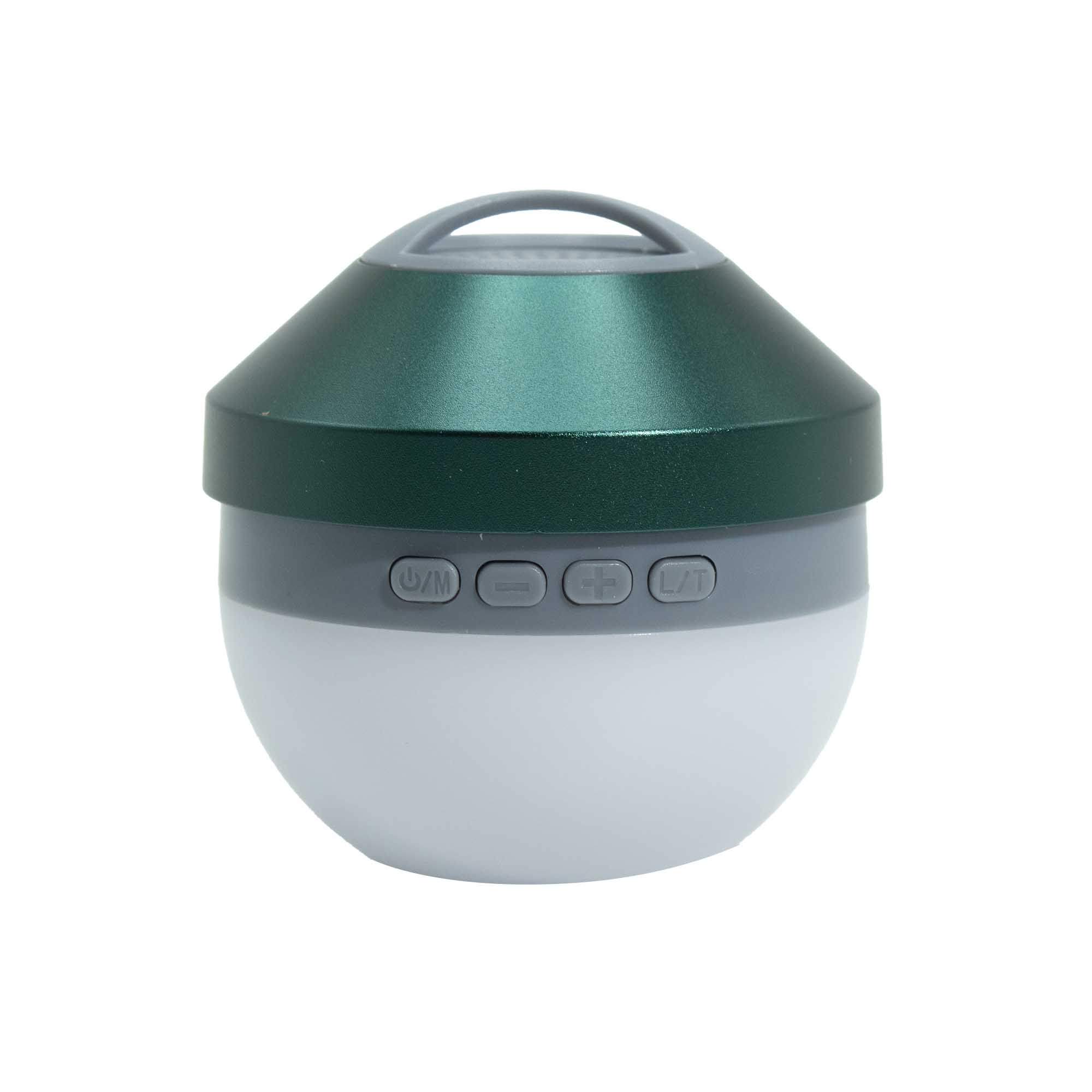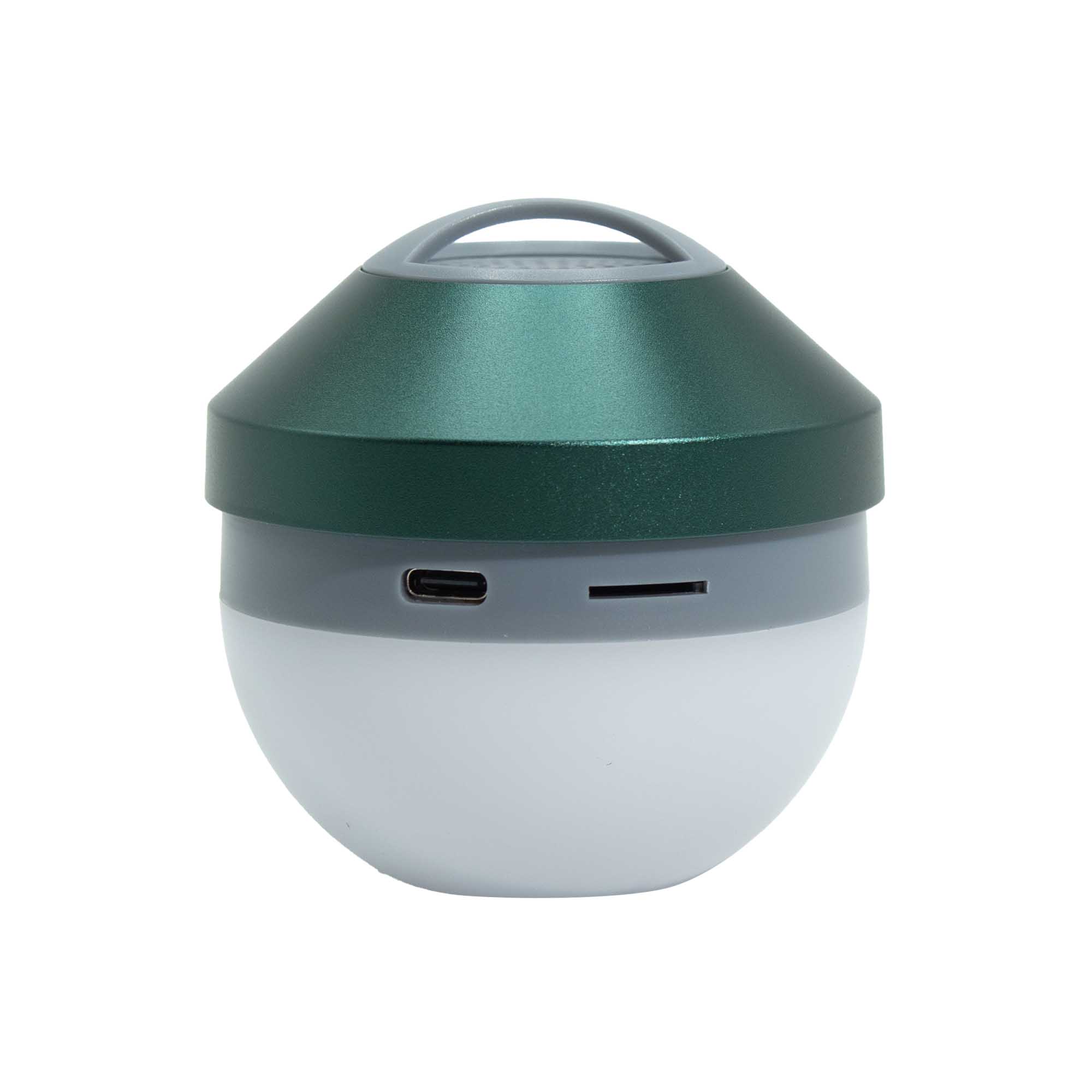 Kempingowy Mini Głośnik-Lampka w kolorze zielonym łączy dźwięk i światło w kompaktowej formie, idealnej zarówno do użytku w domu, jak i na świeżym powietrzu. Doskonale sprawdza się w ogrodzie, na tarasie, podczas biwaków czy w tymczasowych przestrzeniach plenerowych.