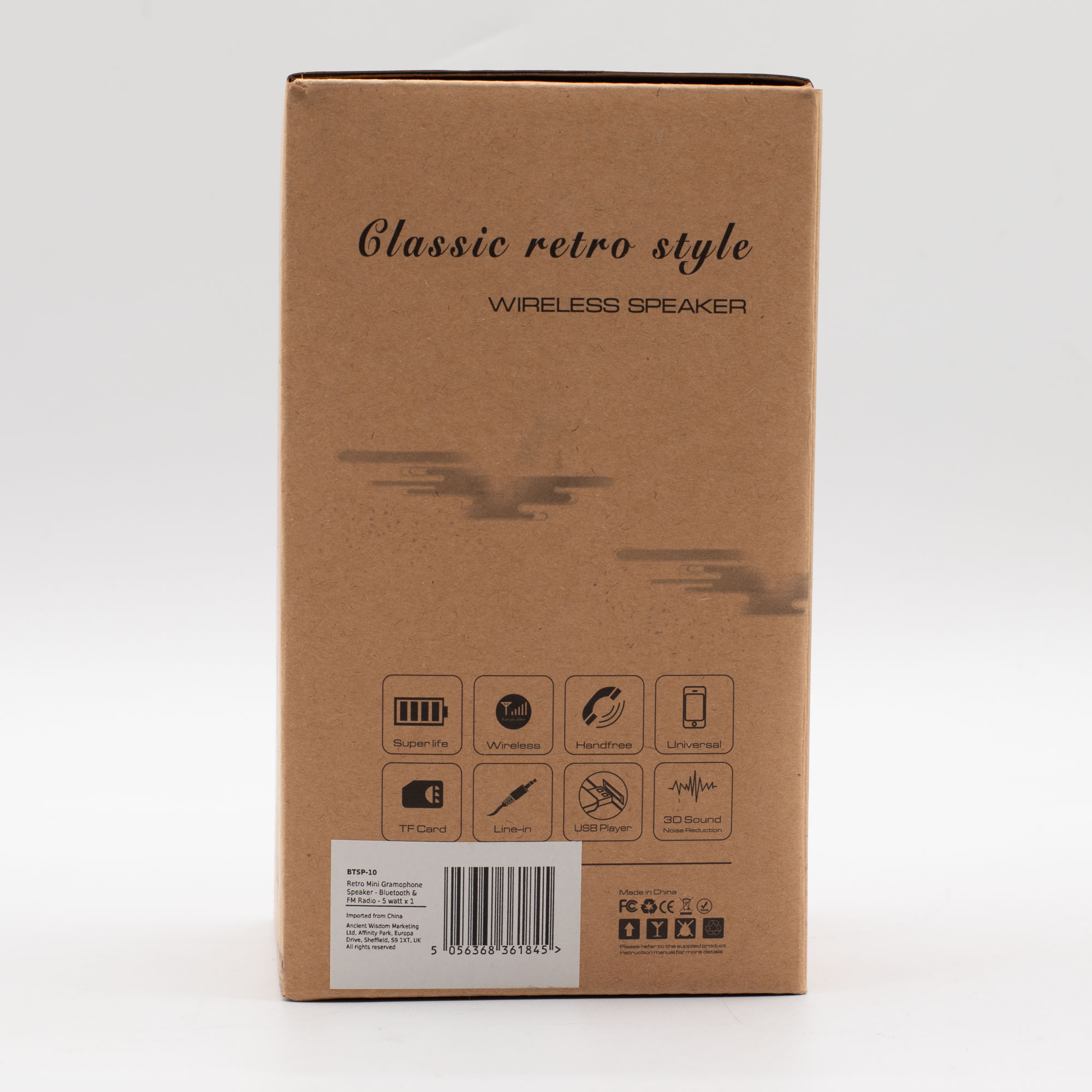 Mini Retro Gramofon łączy klasyczny wygląd gramofonu z nowoczesną funkcjonalnością Bluetooth i radiem FM. Stylowy design przyciąga wzrok i doskonale sprawdza się jako dekoracja wnętrza, a jednocześnie zapewnia praktyczne, codzienne odtwarzanie muzyki.