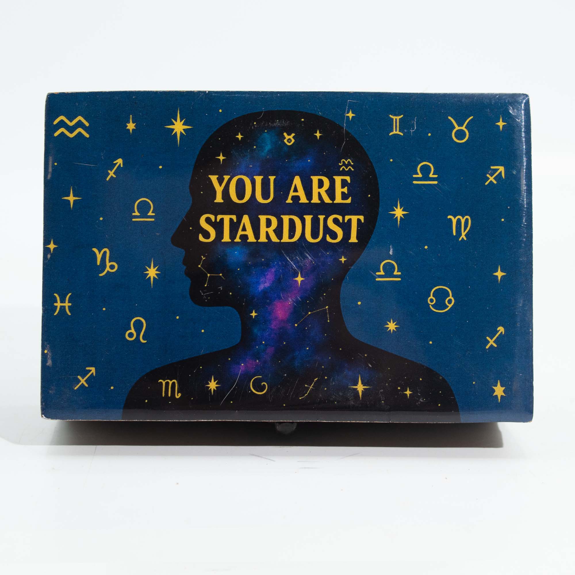 Centralnym punktem produktu jest lśniące, emaliowane wieczko, które przyciąga wzrok głębokim, granatowym odcieniem nocnego nieba. Artystyczna grafika z inspirującym napisem „You are Stardust” oraz sylwetką wypełnioną gwiezdną nebulą przypomina o naszym nierozerwalnym związku z wszechświatem.