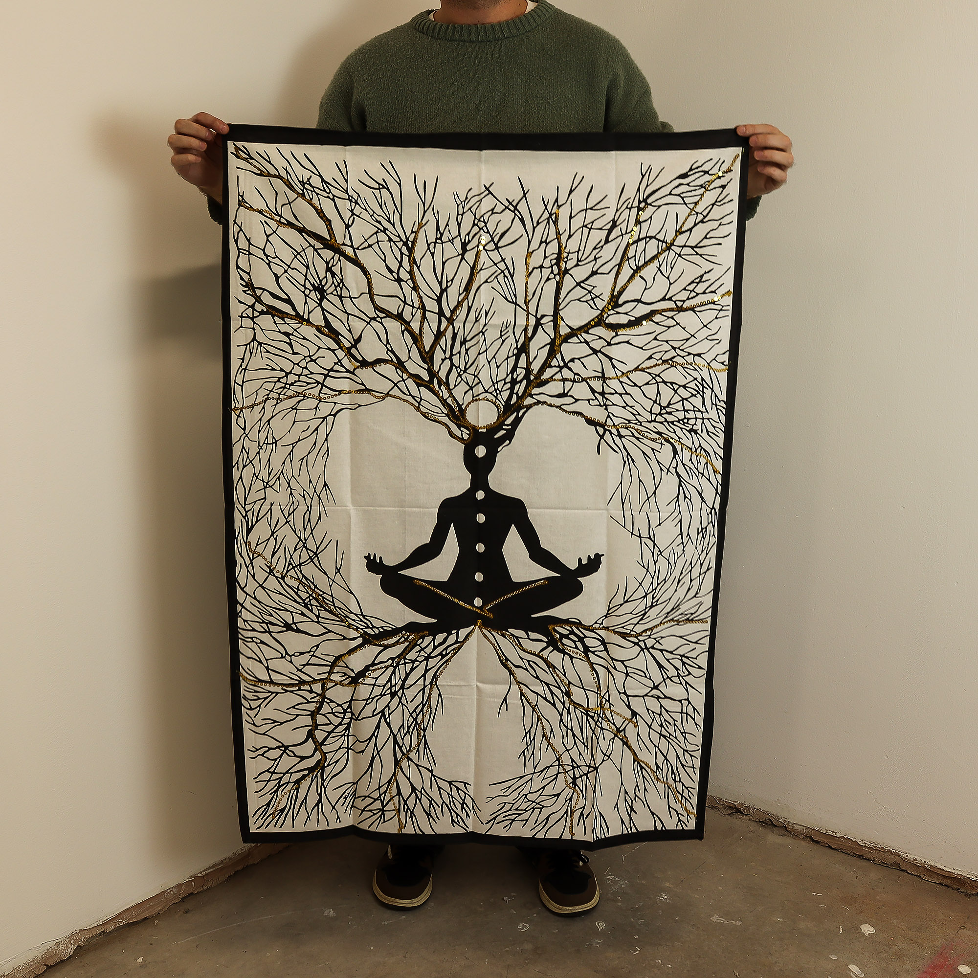 Dekoracyjna tkanina ścienna wykonana z wysokiej jakości bawełny, przedstawiająca motyw harmonijnego połączenia czakr z energią Ziemi. Symboliczny nadruk wprowadza do wnętrza równowagę, spokój i inspirującą atmosferę, doskonale pasując do przestrzeni medytacyjnych, studiów jogi oraz wnętrz w stylu boho i ezoterycznym.