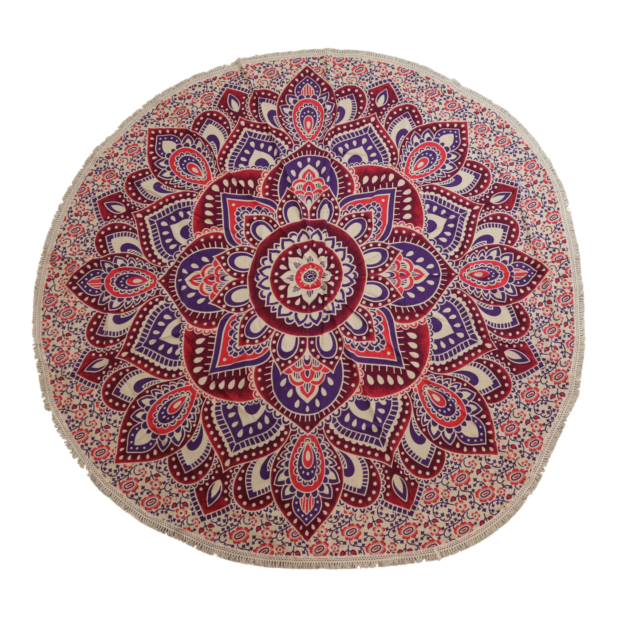 Dekoracyjna, okrągła tkanina ścienna wykonana z wysokiej jakości bawełny, przedstawiająca mandalę w odcieniach różu i fioletu. Wyrazisty, kolorowy nadruk tworzy harmonijną i przyciągającą wzrok kompozycję, wprowadzając do wnętrza elegancję, pozytywną energię i artystyczny charakter.