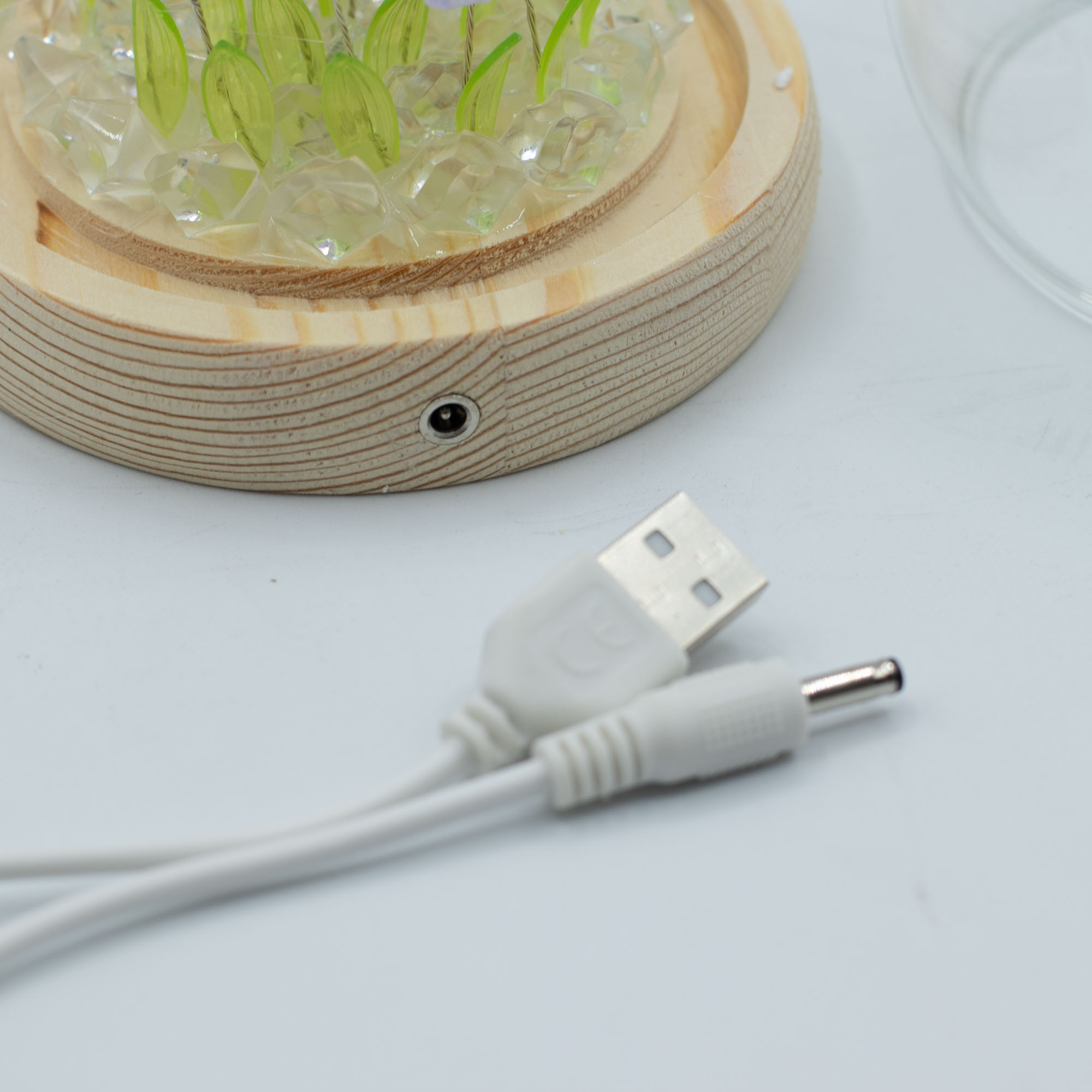 Lampka zasilana jest za pomocą dołączonego kabla USB, co czyni ją niezwykle funkcjonalnym dodatkiem do nowoczesnych przestrzeni, takich jak biurka czy regały z elektroniką. Zintegrowane punkty świetlne LED emitują miękki blask, który efektownie przenika przez płatki tulipanów, podkreślając ich barwę i detal. To idealna propozycja dla detalistów szukających ponadczasowych dekoracji, które łączą w sobie funkcję nastrojowego oświetlenia z wysokimi walorami estetycznymi, stanowiąc gotowy i przemyślany pomysł na upominek.