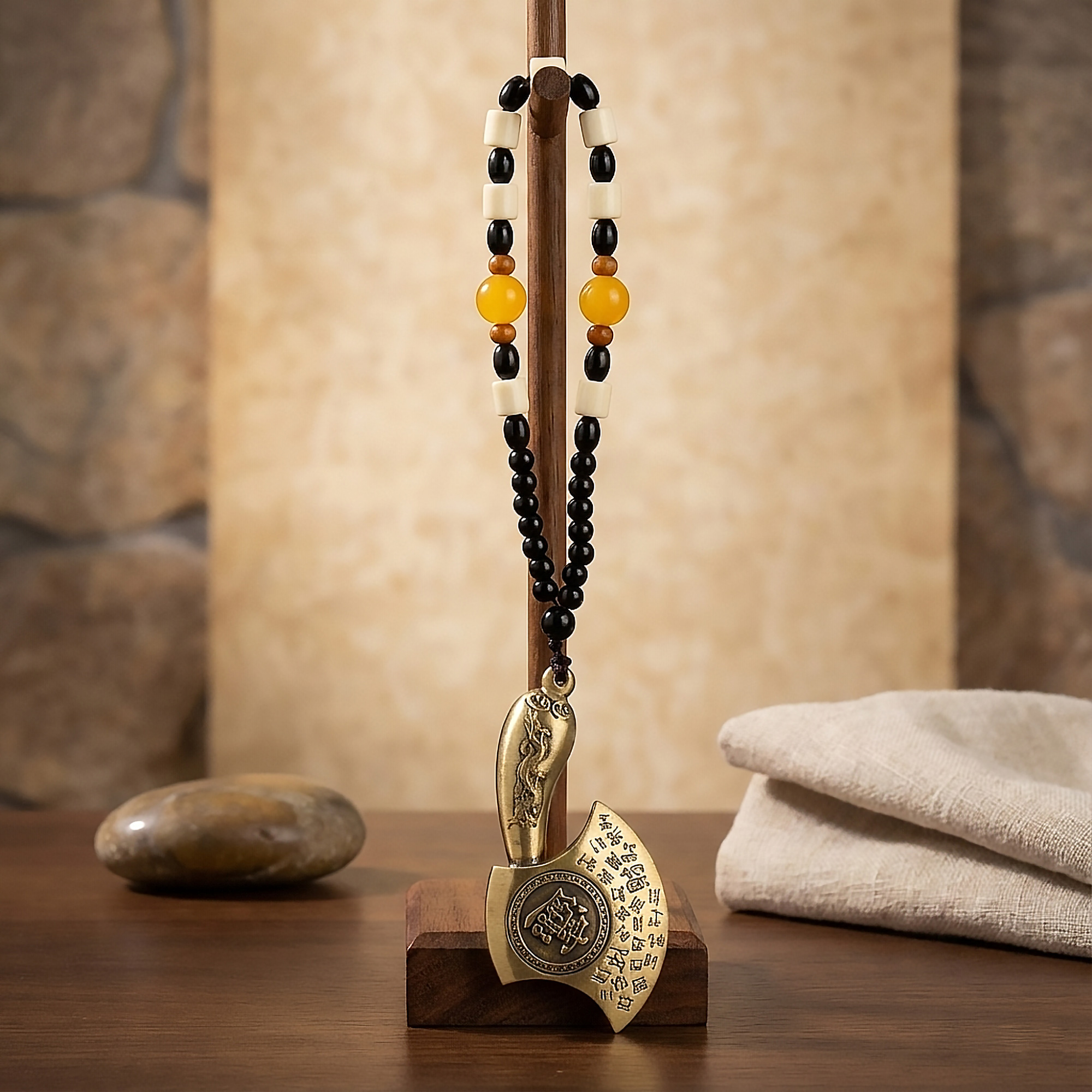 Unikalny symbol ochronny, idealny dla klientów poszukujących przedmiotów o znaczeniu symbolicznym i talizmanów sukcesu. Zawieszka Feng Shui w kształcie siekiery to potężne narzędzie metaforyczne, które według tradycyjnych wierzeń ma za zadanie „odcinać” negatywną energię, usuwać życiowe przeszkody oraz torować drogę do rozwoju osobistego i zawodowego. Wykonana z mosiądzu, charakteryzuje się bogatym wzornictwem, co podnosi jej walory estetyczne i czyni ją atrakcyjnym elementem dekoracyjnym do samochodu, biura czy domu.