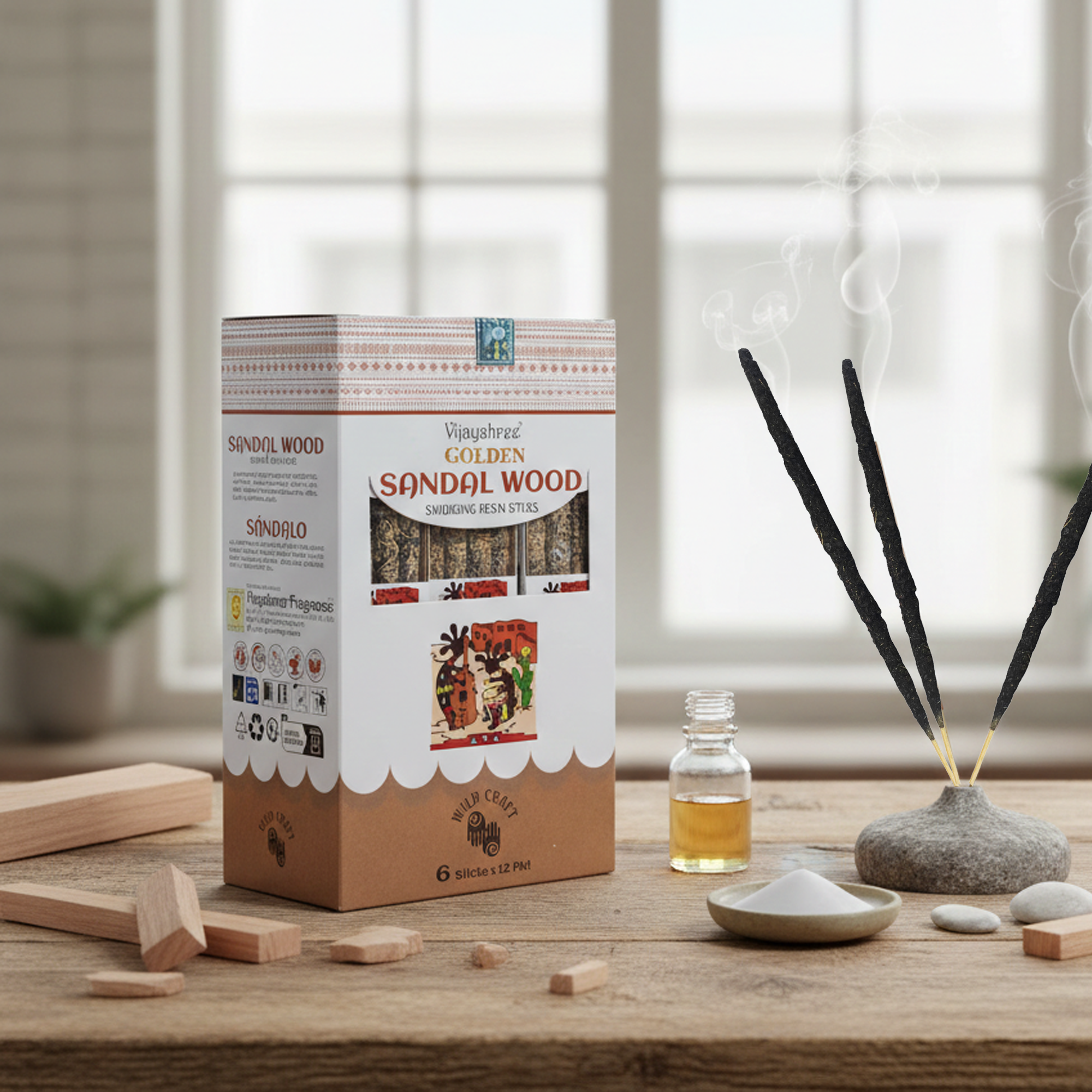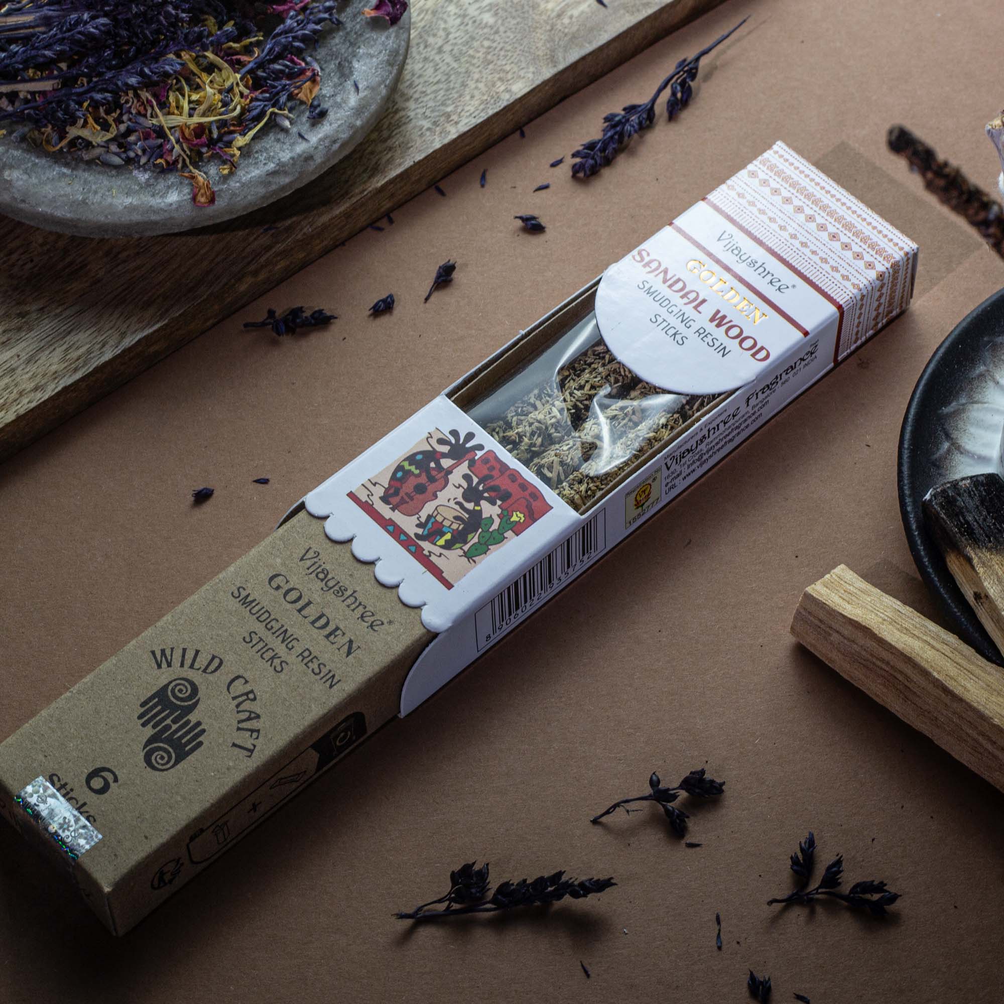 Żywice Rytualne na Patyczkach Golden – Drzewo Sandałowe to klasyczna, głęboka kompozycja zapachowa ceniona za swój ciepły, drzewny i otulający charakter. Ręcznie formowane patyczki z naturalnych żywic łączą tradycję rytuałów oczyszczania z wygodną formą użytkowania, zapewniając intensywny i naturalny aromat podczas spalania.