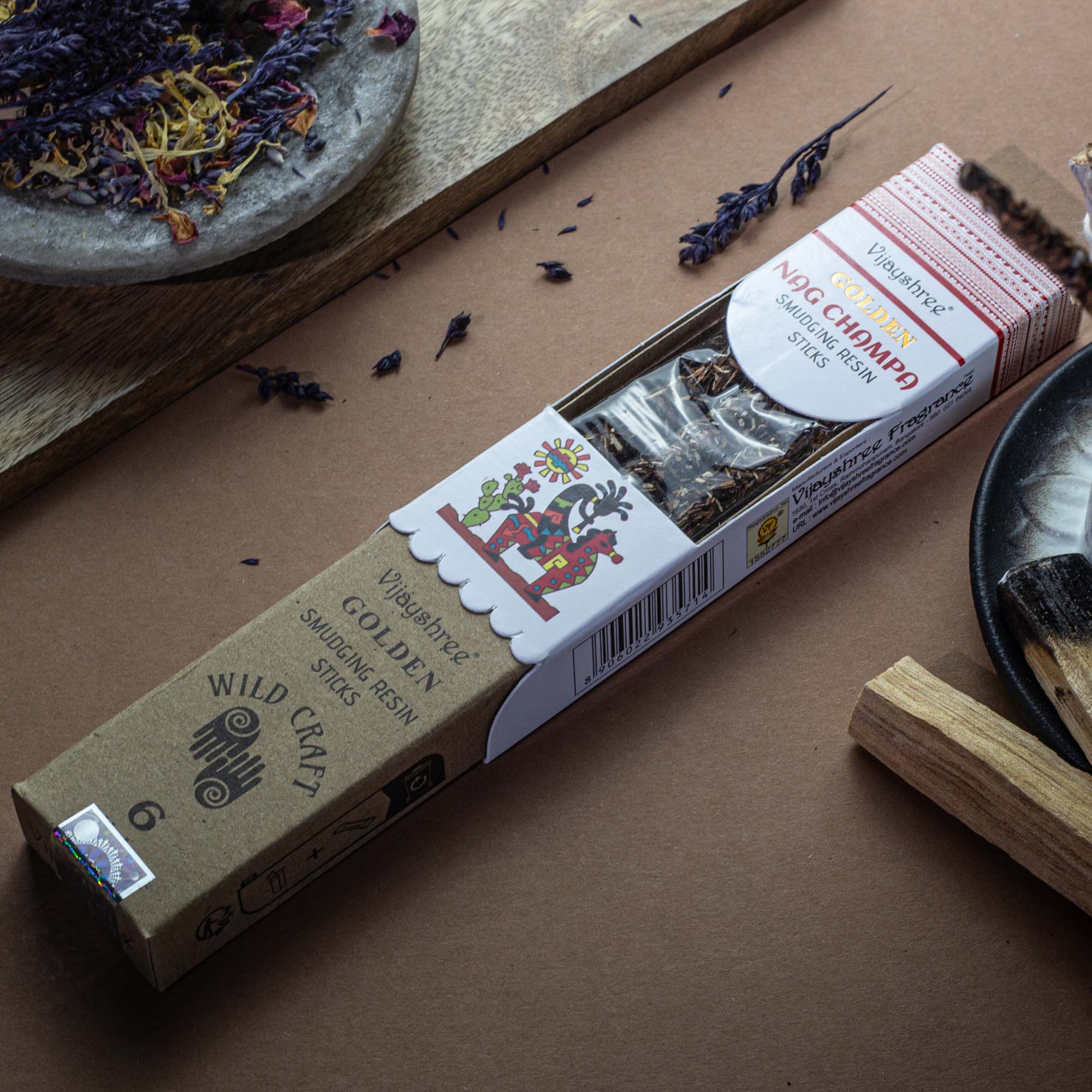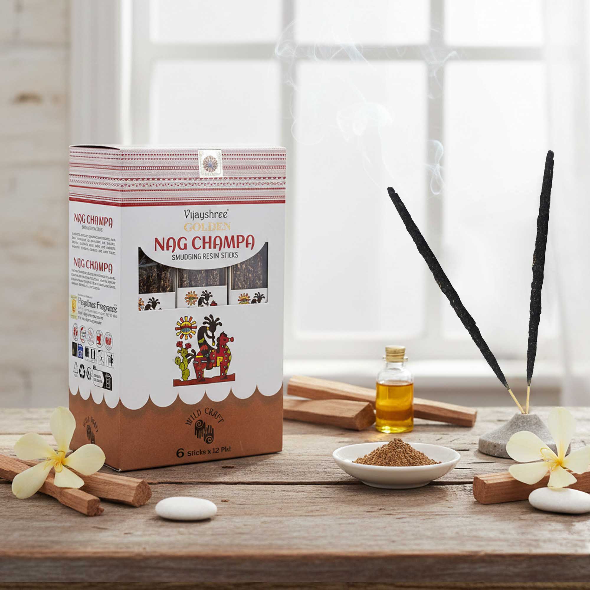 Żywice Rytualne na Patyczkach Golden – Nag Champa to kultowa, orientalna kompozycja o ciepłym, lekko słodkim i drzewno-kwiatowym aromacie. Ręcznie formowane patyczki z naturalnych żywic nawiązują do tradycyjnych rytuałów oczyszczania przestrzeni, oferując jednocześnie wygodną i nowoczesną formę użytkowania. Podczas spalania uwalniają intensywny, głęboki zapach, który sprzyja medytacji, relaksowi i tworzeniu nastrojowej atmosfery.