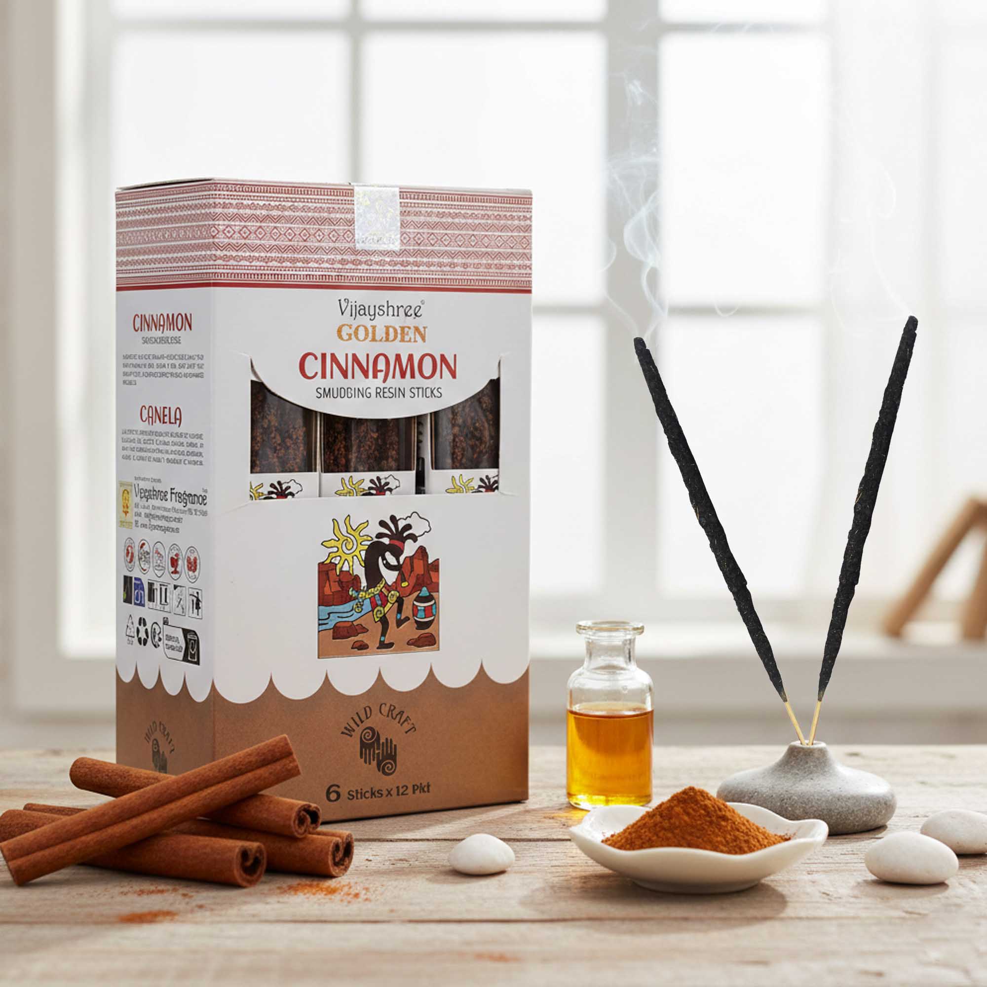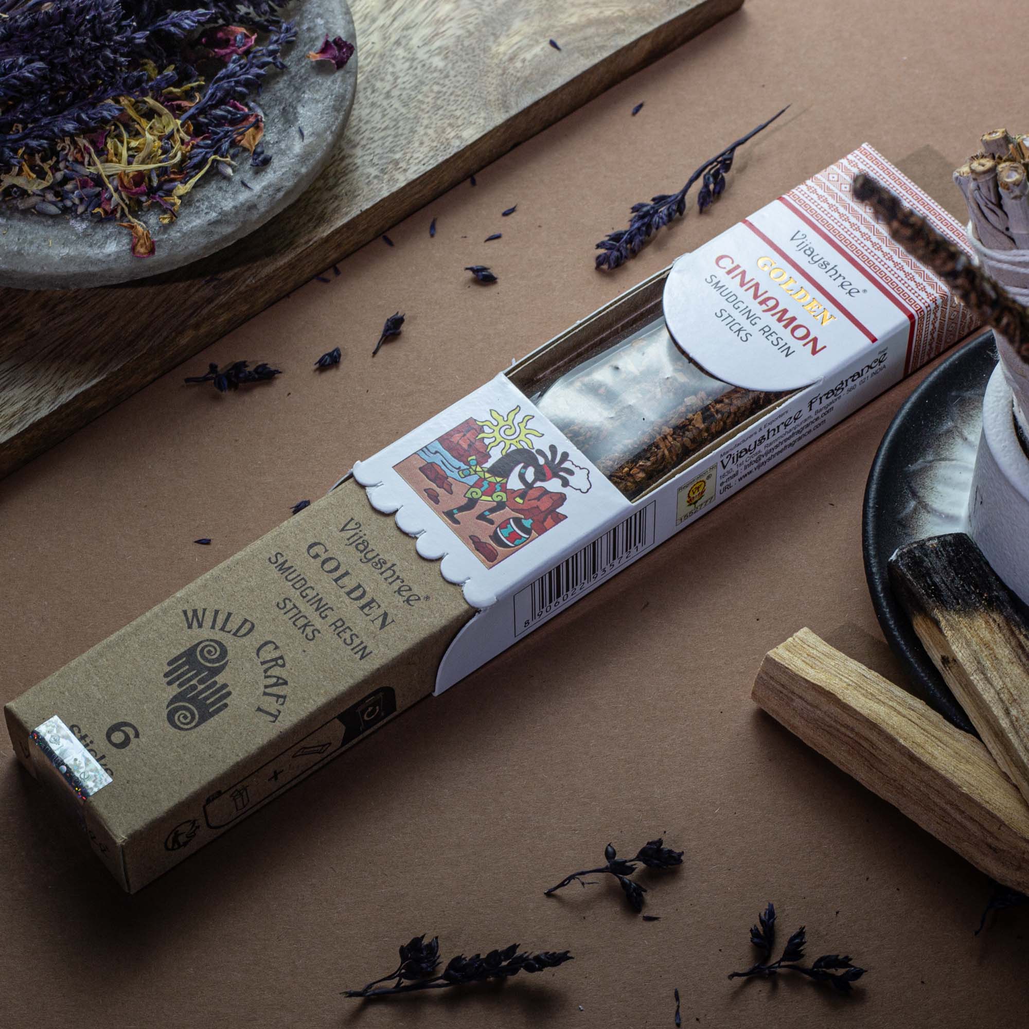 Żywice Rytualne na Patyczkach Golden – Cynamon to intensywna, ciepła kompozycja o korzennym i lekko słodkim aromacie, który wprowadza do wnętrz przytulną, otulającą atmosferę. Ręcznie formowane patyczki z naturalnych żywic nawiązują do tradycyjnych rytuałów oczyszczania, oferując jednocześnie wygodną formę użytkowania i głęboki, naturalny zapach podczas spalania.