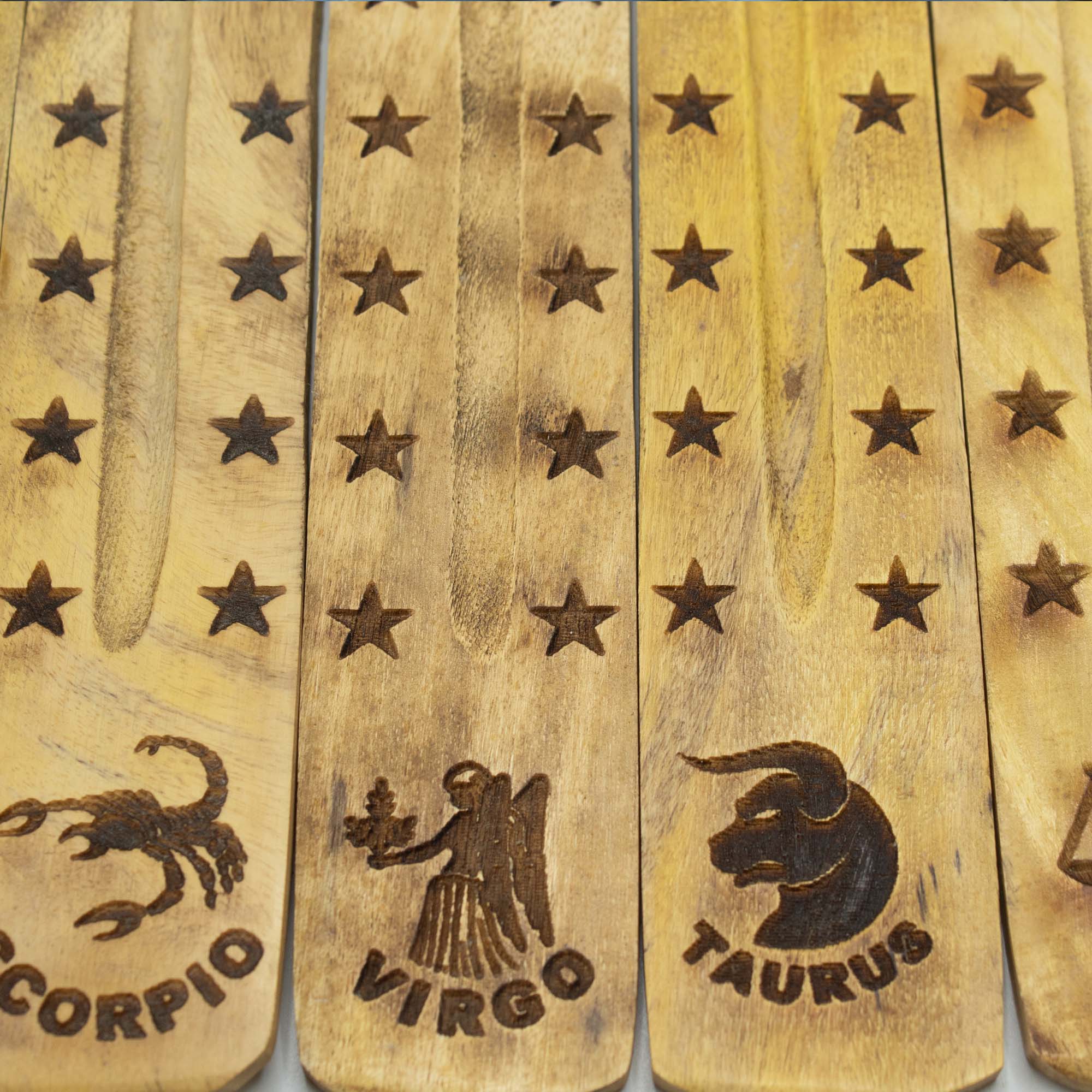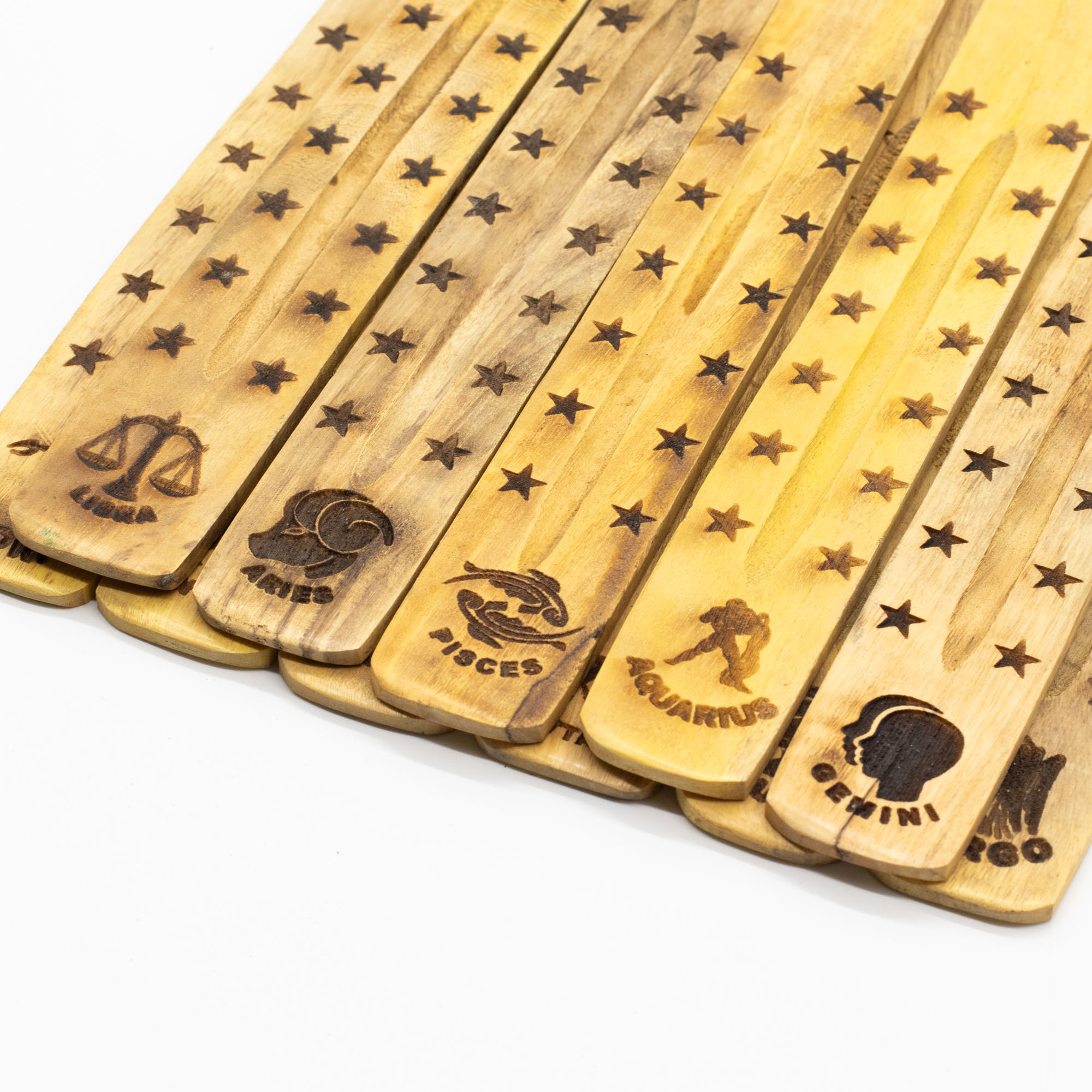 Ten komplet 12 podstawek pod kadzidełka wykonany z trwałego drewna mango to gotowy koncept sprzedażowy, który idealnie wykorzystuje niesłabnący trend personalizacji i astrologii. Każdy element zestawu reprezentuje inny znak zodiaku, opatrzony czytelnym symbolem oraz nazwą, co pozwala klientom detalicznym na łatwy wybór produktu dopasowanego do ich daty urodzenia.