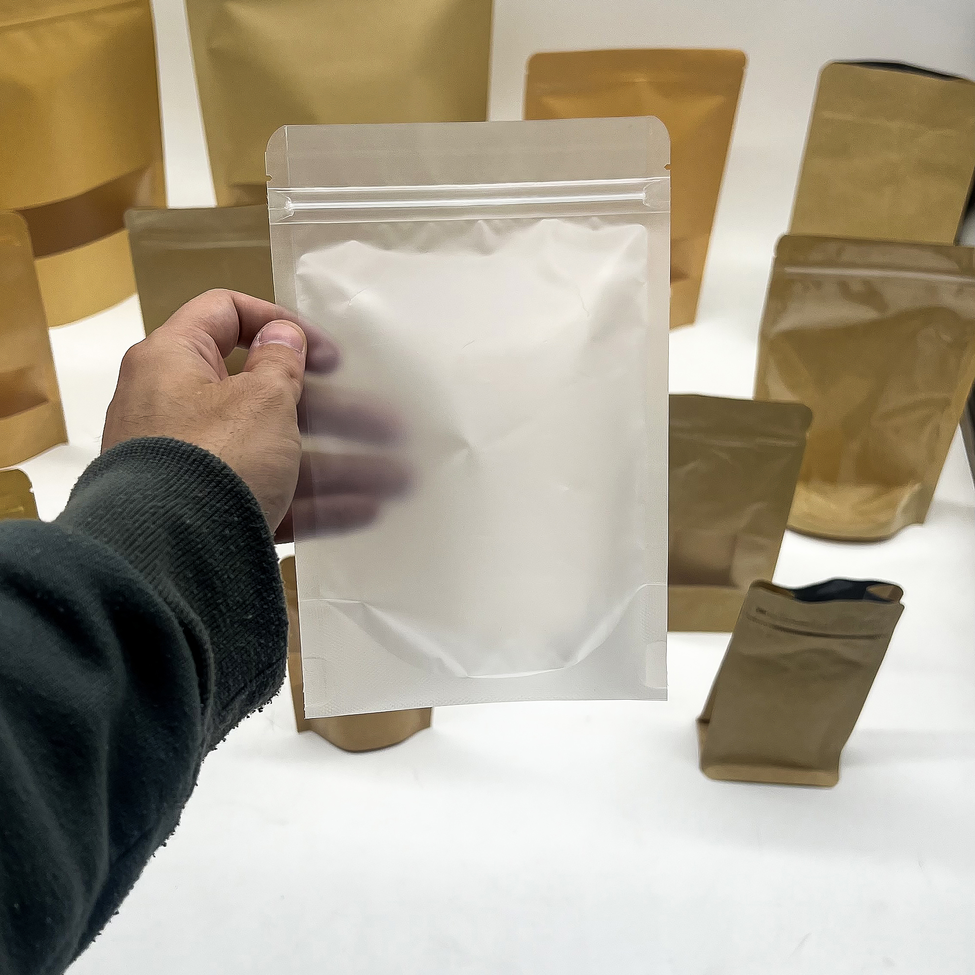 Średniej wielkości torebka o wymiarach 14x20 cm to wszechstronne opakowanie, które łączy nowoczesną, minimalistyczną estetykę z wysoką funkcjonalnością. Wykonana z trwałego tworzywa o matowym, półprzezroczystym wykończeniu, pozwala na dyskretną prezentację zawartości, chroniąc ją jednocześnie przed zabrudzeniami i czynnikami zewnętrznymi. Delikatnie zamglona struktura materiału nadaje produktom profesjonalny wygląd, idealnie wpisując się w standardy nowoczesnego handlu i branży wellness.