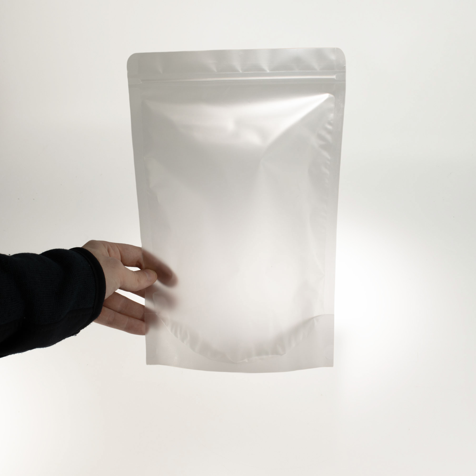 Największy wariant w naszej kolekcji matowych opakowań, o wymiarach 20x30x5 cm, został zaprojektowany z myślą o produktach wymagających największej powierzchni ochronnej oraz stabilnej ekspozycji. Wykonana z wysokiej jakości tworzywa o charakterystycznym, „mrożonym” wykończeniu, torebka oferuje nowoczesną, minimalistyczną estetykę, która skutecznie maskuje zawartość, chroniąc ją jednocześnie przed kurzem, wilgocią i zabrudzeniami. Półprzezroczysta struktura materiału nadaje zapakowanym przedmiotom profesjonalny wygląd, idealnie wpisując się w standardy wizualne branży Wellness oraz nowoczesnych artykułów wyposażenia wnętrz.