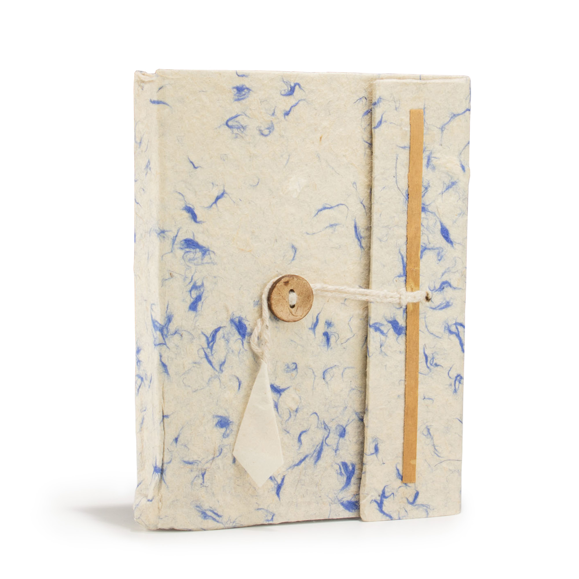 W środku znajduje się około 45 kartek papieru Lokta – ekologicznego materiału wytwarzanego w Himalajach z odnawialnej kory krzewu Daphne. Cały proces produkcji – od zbioru po suszenie – odbywa się ręcznie, co nadaje każdej kartce wyjątkową fakturę i charakter.