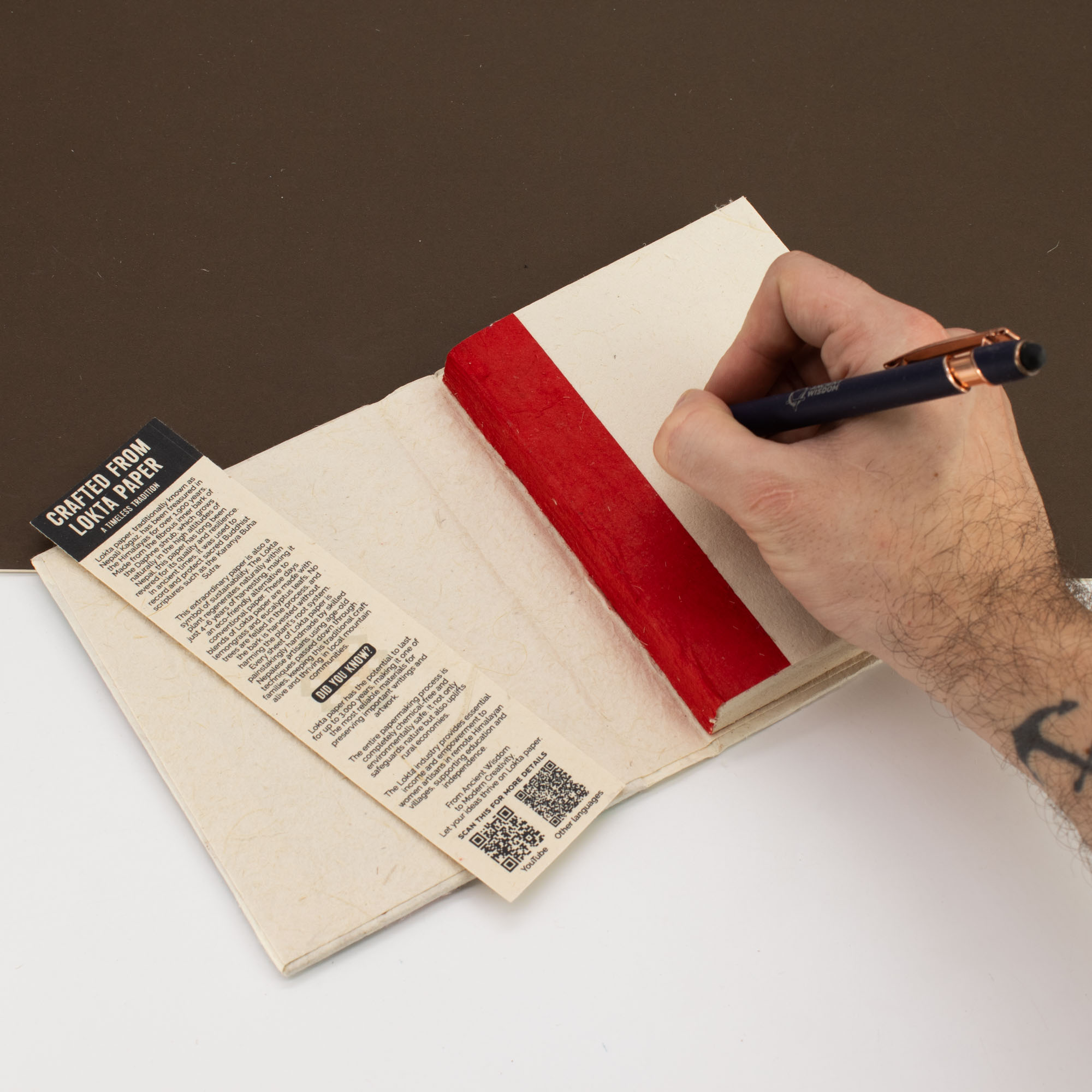 Produkt zawiera 45 kartek tradycyjnego papieru czerpanego, cenionego za swoją unikalną fakturę, wysoką gramaturę oraz niezwykłą trwałość i odporność na wilgoć. Poręczny format 15 x 12 cm sprawia, że notatnik jest niezwykle praktyczny, a solidne wykończenie krawędzi gwarantuje estetyczny wygląd nawet przy intensywnym użytkowaniu. To idealny wybór dla klientów poszukujących autentycznych produktów typu eco-friendly, które łączą funkcjonalność z nowoczesnym, artystycznym designem.