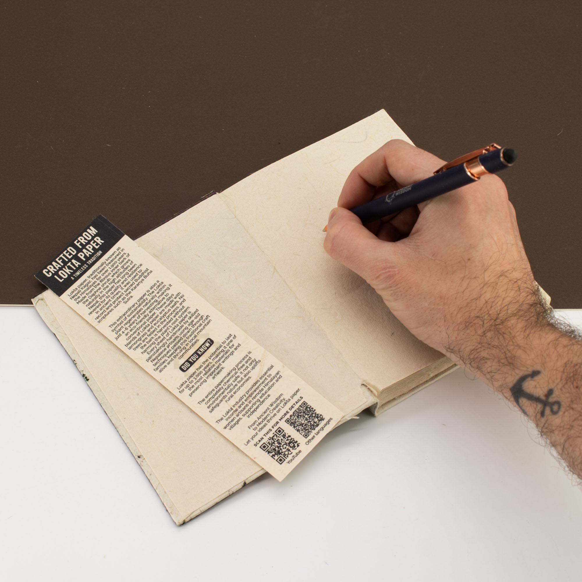 Ten unikatowy notatnik wykonany z autentycznego papieru czerpanego lokta to hołd dla nepalskiej tradycji i rzemiosła. Okładka charakteryzuje się designem inspirowanym tybetańskimi flagami modlitewnymi.