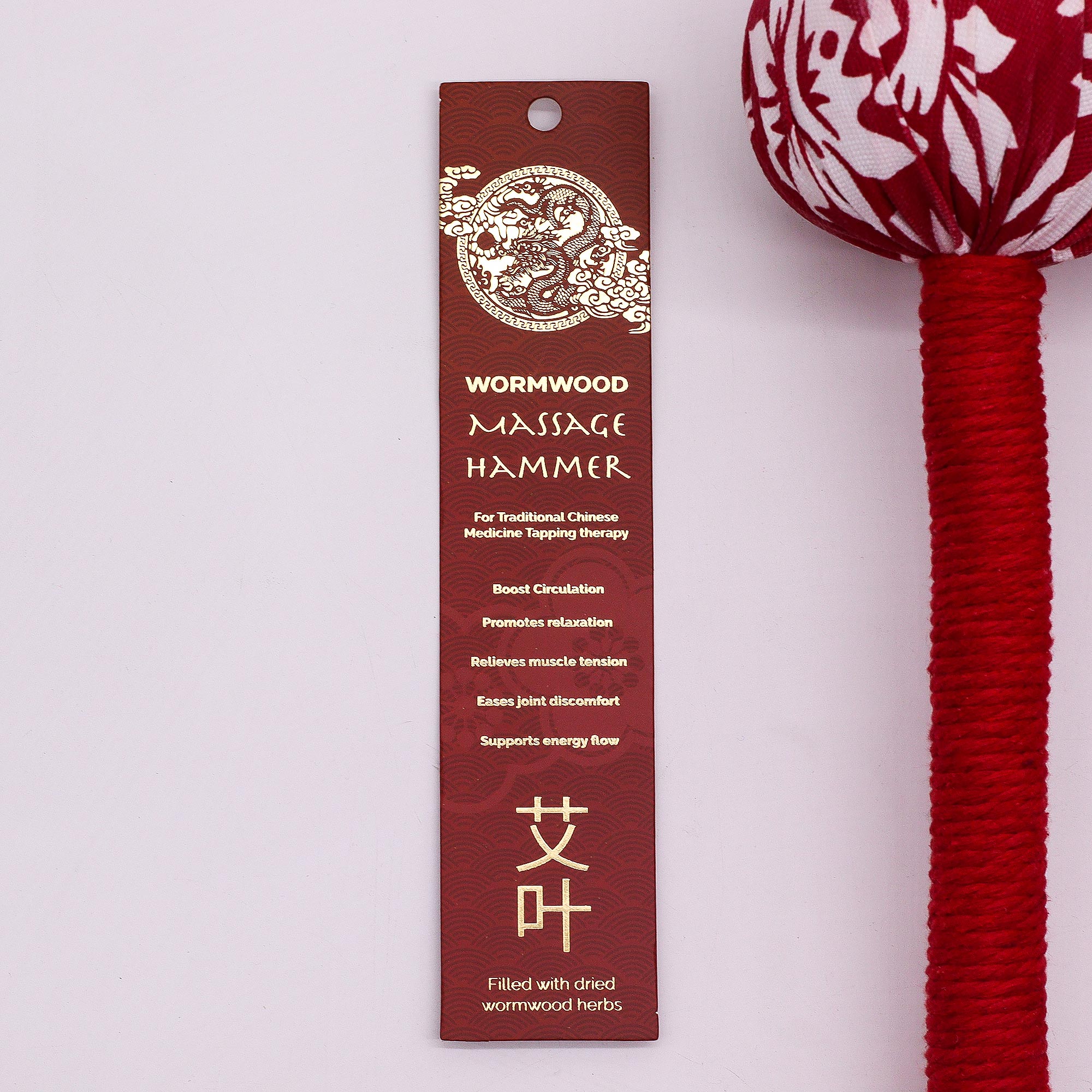Tradycyjny Czerwony Masażer z Piołunem inspirowany medycyną chińską to naturalny sposób na relaks, poprawę krążenia i redukcję napięcia mięśniowego. Wypełnienie z aromatycznego piołunu znane jest ze swoich oczyszczających i kojących właściwości, pomagając przywrócić równowagę ciała i umysłu.