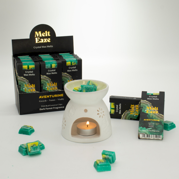 Wosk zapachowy Melt Eaze Gęsty Las z Awenturynem to unikalny produkt premium, łączący zapach natury z autentycznymi minerałami. Każda tabliczka 50g zawiera zatopione kamienie naturalne i dzieli się na 10 wygodnych segmentów, co zapewnia łatwe dozowanie i wysoką wydajność. To idealny towar impulsowy, który przyciąga uwagę klientów i gwarantuje szybką rotację.