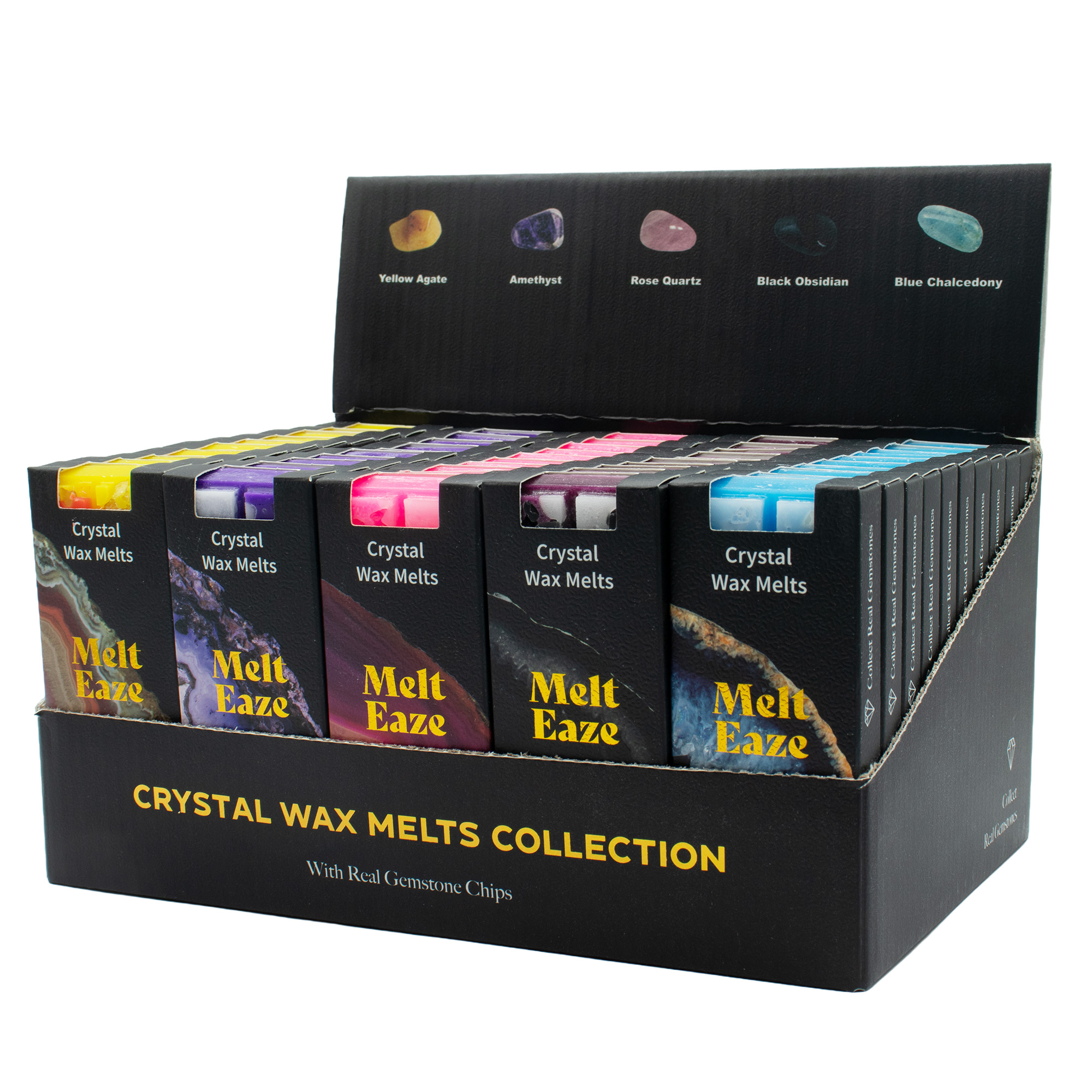 Zestaw startowy Melt Eaze (50 sztuk) to gotowy pakiet 5 bestsellerowych zapachów z dopasowanymi kamieniami naturalnymi, idealny do budowania oferty typu „pick-and-mix”. Pakiet zawiera 50 tabliczek 50g (po 10 z każdego rodzaju), które od razu tworzą kompletną, kolorową i wysokomarżową ekspozycję.