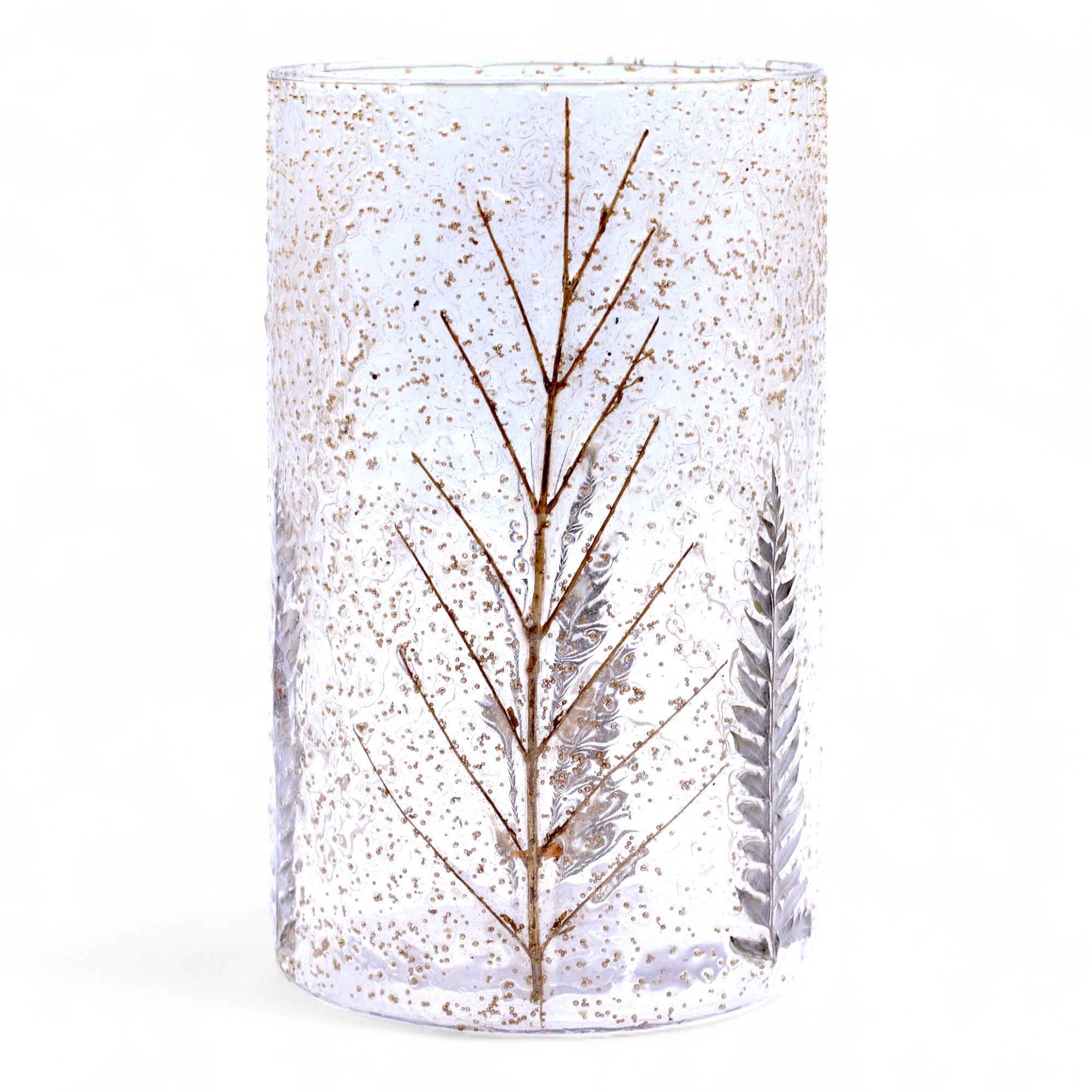 Szklany Kwiatowy Świecznik Wysoki Wazonik – Sosna łączy smukłą, elegancką formę z naturalnym urokiem zatopionych suszonych gałązek sosny i innych roślin. Wysoka, wazonikowa sylwetka sprawia, że świecznik prezentuje się efektownie zarówno jako samodzielna dekoracja, jak i część zestawu upominkowego czy aranżacji stołu.
