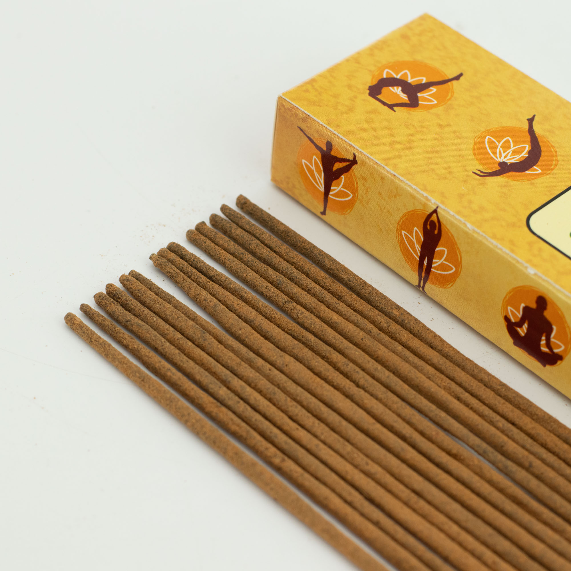 Opakowanie wyróżnia się na tle serii ciepłym, słonecznym kolorem oraz grafikami przedstawiającymi asany, co od razu komunikuje przeznaczenie produktu i ułatwia klientowi wybór. Jest to idealna propozycja dla studiów jogi, salonów medytacji, sklepów z asortymentem wellness oraz butików z ekologicznymi dodatkami do domu.