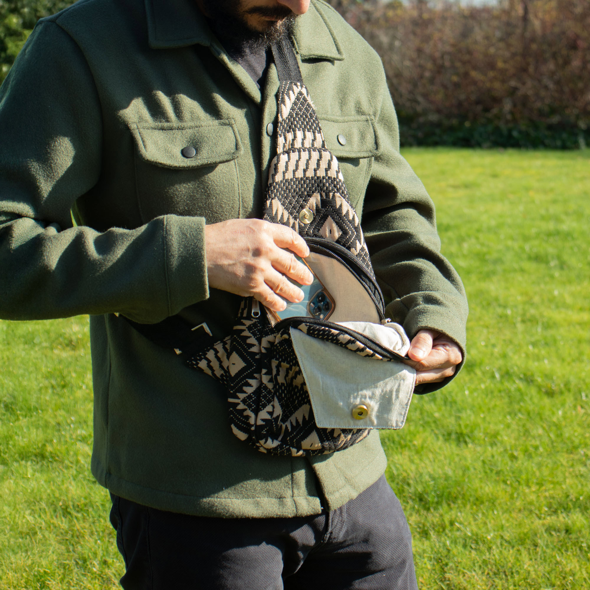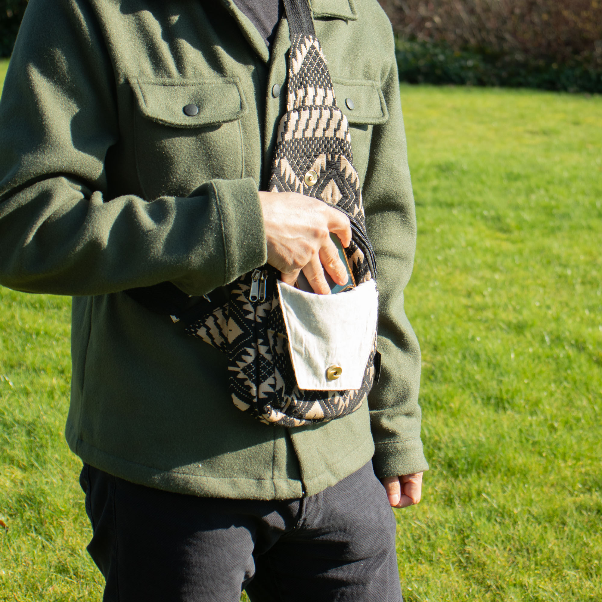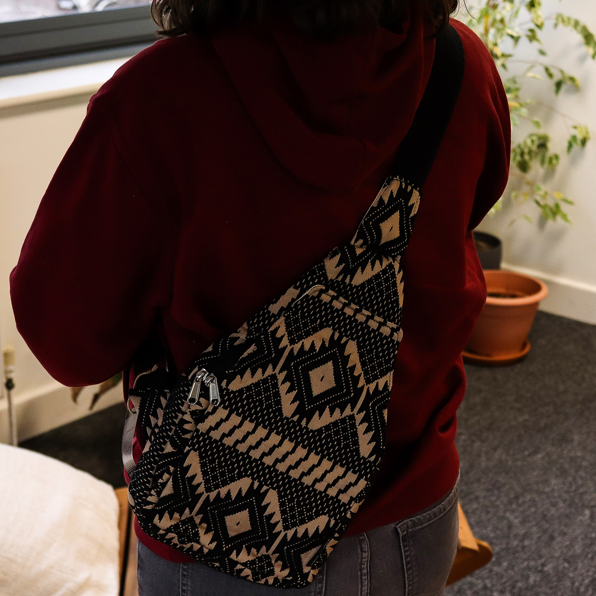 Żakardowa Torba przez Ramię Desert Loom to kompaktowy model o wyrazistym, tkanym wzorze inspirowanym pustynnymi krajobrazami i tradycyjnym rzemiosłem. Ręcznie wykonana w Indiach z miękkiej, a jednocześnie trwałej tkaniny żakardowej, łączy autentyczny charakter handmade z funkcjonalnością na co dzień.