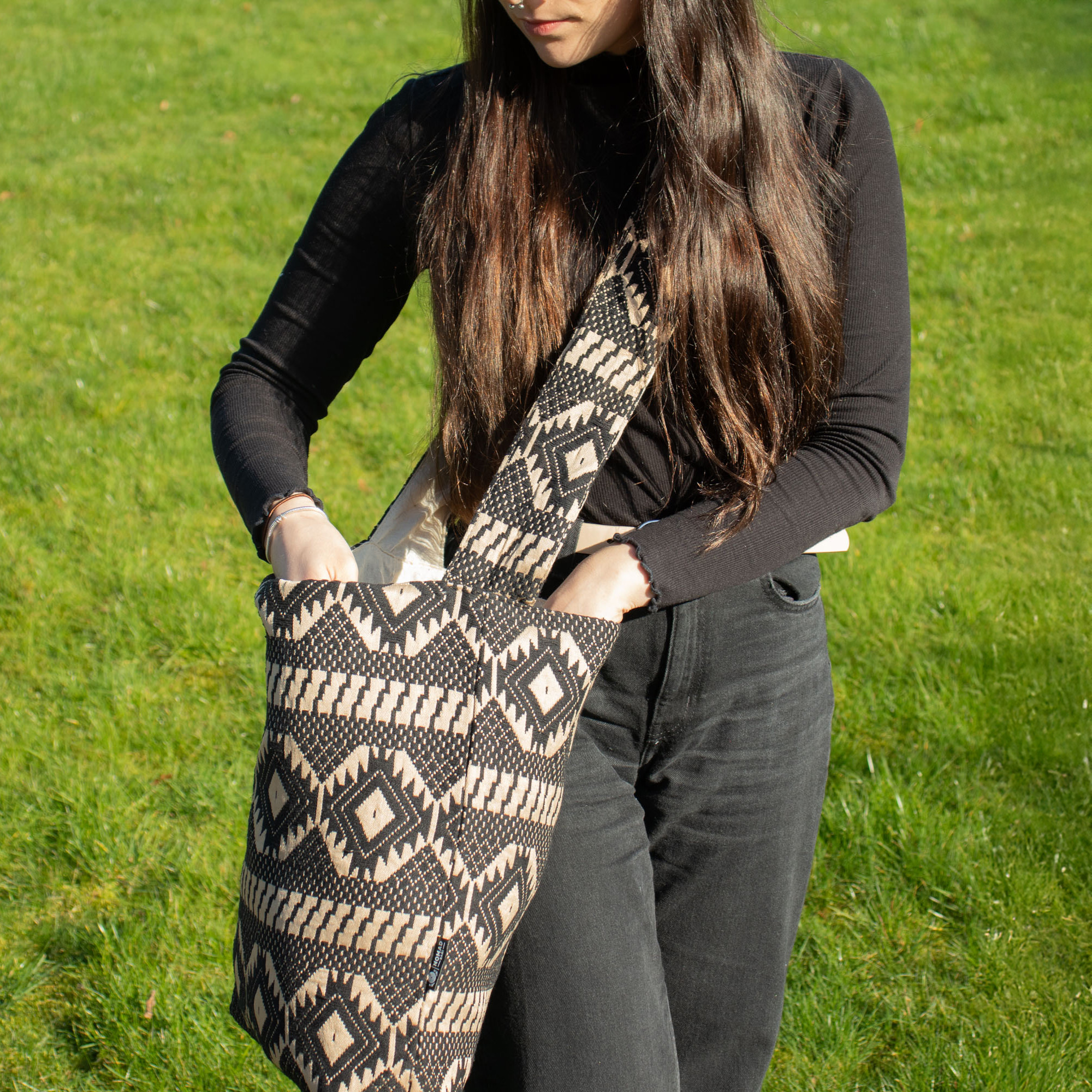 Żakardowa Torba na Wszystko Desert Loom to pojemny, uniwersalny model zaprojektowany z myślą o codziennej wygodzie i naturalnym, swobodnym stylu inspirowanym krajobrazami pustynnych wędrówek. Wykonana w Indiach z miękkiej tkaniny żakardowej, zachwyca delikatnym, geometrycznym wzorem w ciepłych, piaskowych odcieniach, który nadaje jej autentyczny i elegancki charakter.
