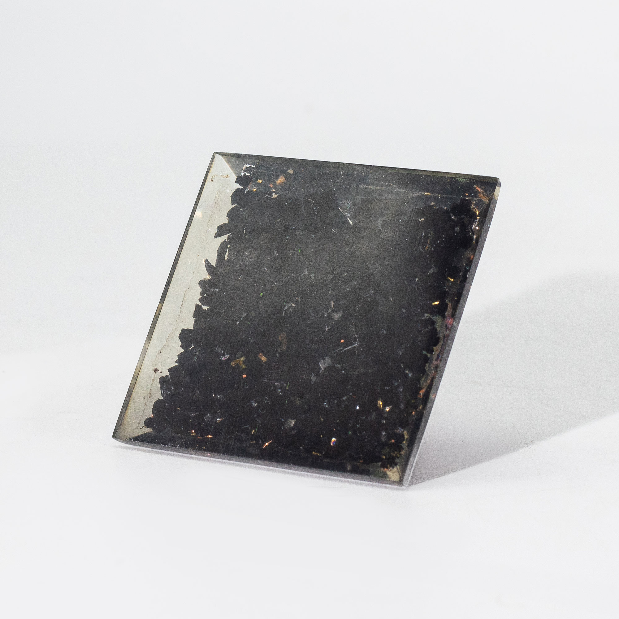 Mała piramida orgonitowa o wymiarach około 5,5 × 4,5 cm, ozdobiona symbolem Drzewa Życia i wypełniona drobnymi kawałkami czarnego turmalinu. To elegancki i energetyczny przedmiot, łączący w sobie żywicę, metale i naturalne minerały, tworząc harmonijną kompozycję o wyjątkowych walorach estetycznych i duchowych.