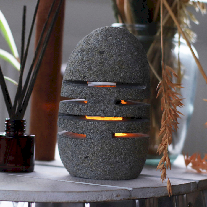 Odpowiedni do użytku zarówno w przestrzeniach domowych, jak i komercyjnych, takich jak hotele, gabinety SPA czy restauracje. Wewnętrzny otwór jest przystosowany do standardowych wkładów typu tealight. Świecznik z kamienia rzecznego to propozycja dla odbiorców poszukujących trwałych i ponadczasowych dodatków, które z biegiem lat nie tracą na wartości wizualnej, lecz zyskują szlachetny charakter.