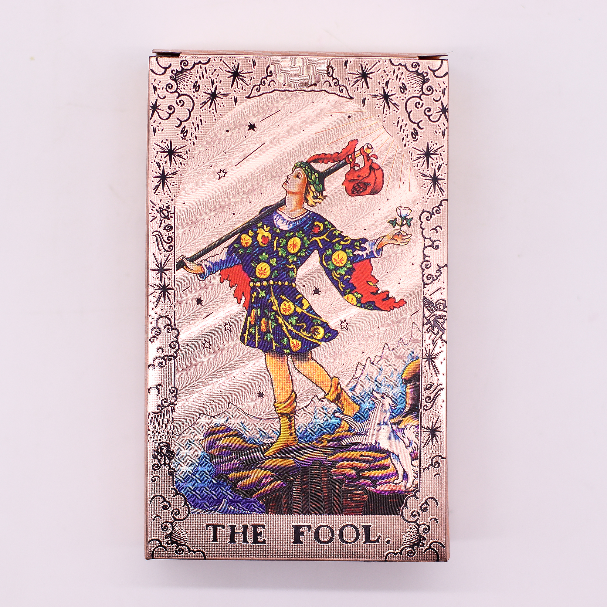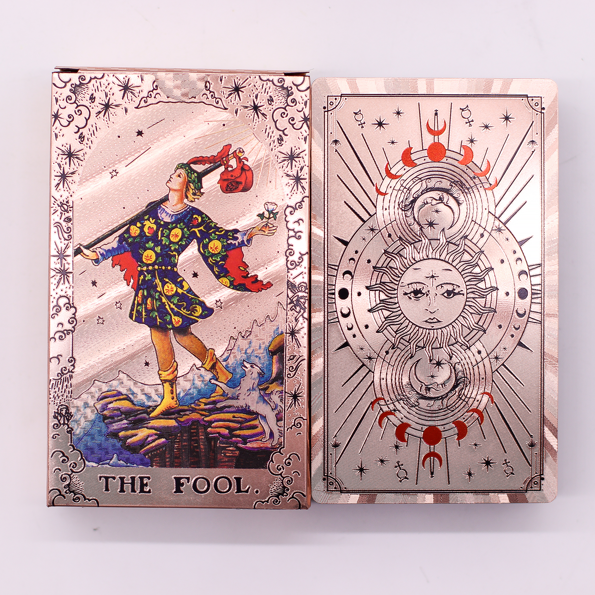 Wzbogać swoją ofertę o luksusowy zestaw kart tarota z motywem Fazy Księżyca, wykończony folią w kolorze różowego złota, która nadaje talii wyjątkowy blask. Każda z 78 kart łączy klasyczną symbolikę tarota z eleganckim, księżycowym motywem, tworząc wizualnie zachwycający i spójny zestaw, który przyciąga uwagę klientów.