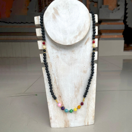 Porowata struktura kamieni pozwala na dodanie olejku eterycznego, dzięki czemu naszyjnik może pełnić funkcję osobistego dyfuzora zapachowego. Każdy egzemplarz jest elegancko zapakowany w czarne pudełko z opisem duchowego znaczenia, gotowe do sprzedaży lub wręczenia jako prezent. To idealna propozycja dla sklepów z upominkami, butików ezoterycznych i centrów wellness, łącząca piękno, funkcjonalność i duchową głębię.