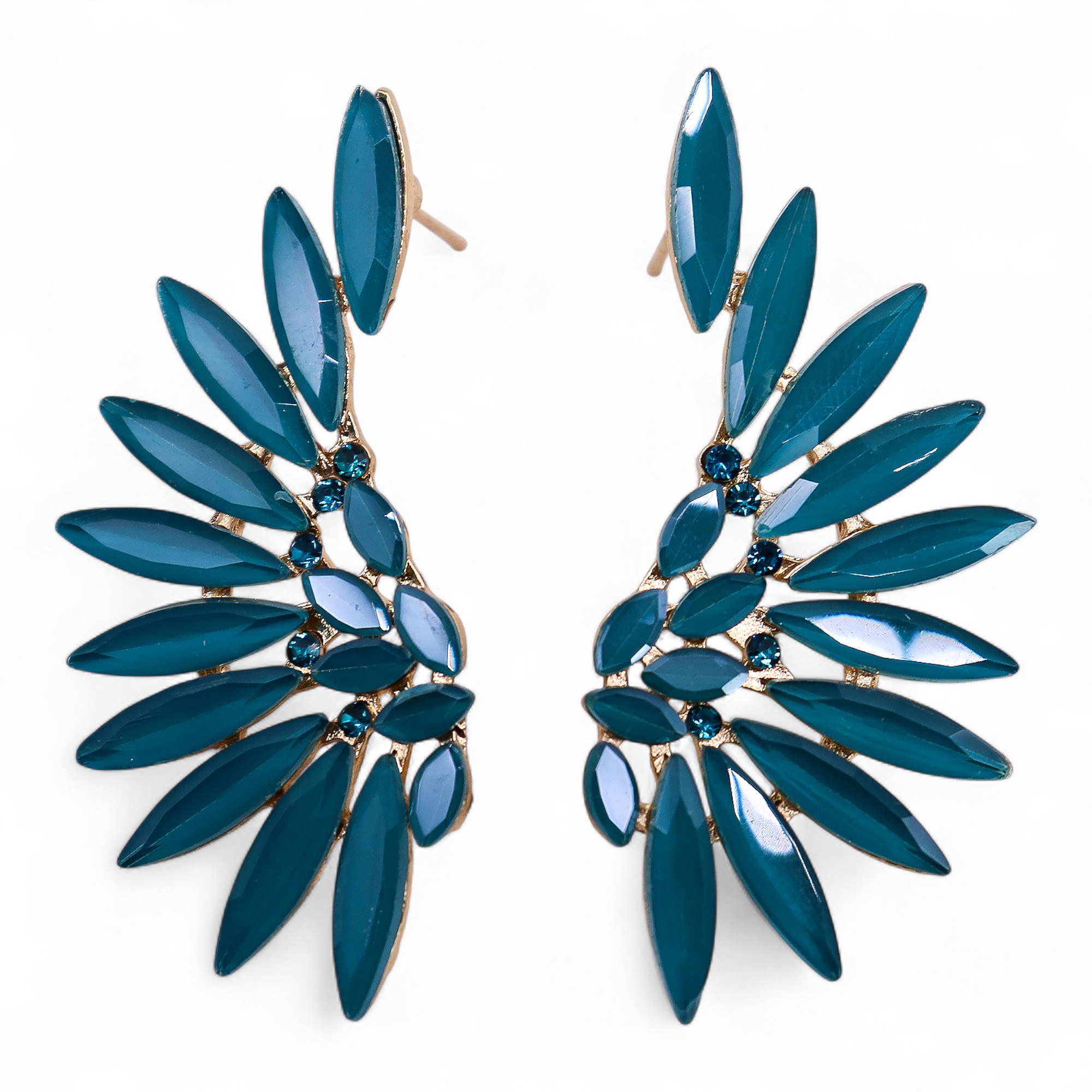 Turkusowo-zielone kolczyki w kształcie Skrzydeł Anioła z kolekcji Nymph Aurora łączą subtelną lekkość z elegancją, tworząc produkt, który wyróżnia się na każdej ekspozycji. Ręcznie wykonane szklane detale w intensywnym odcieniu turkusu i zieleni odbijają światło, nadając biżuterii eteryczny i romantyczny charakter.