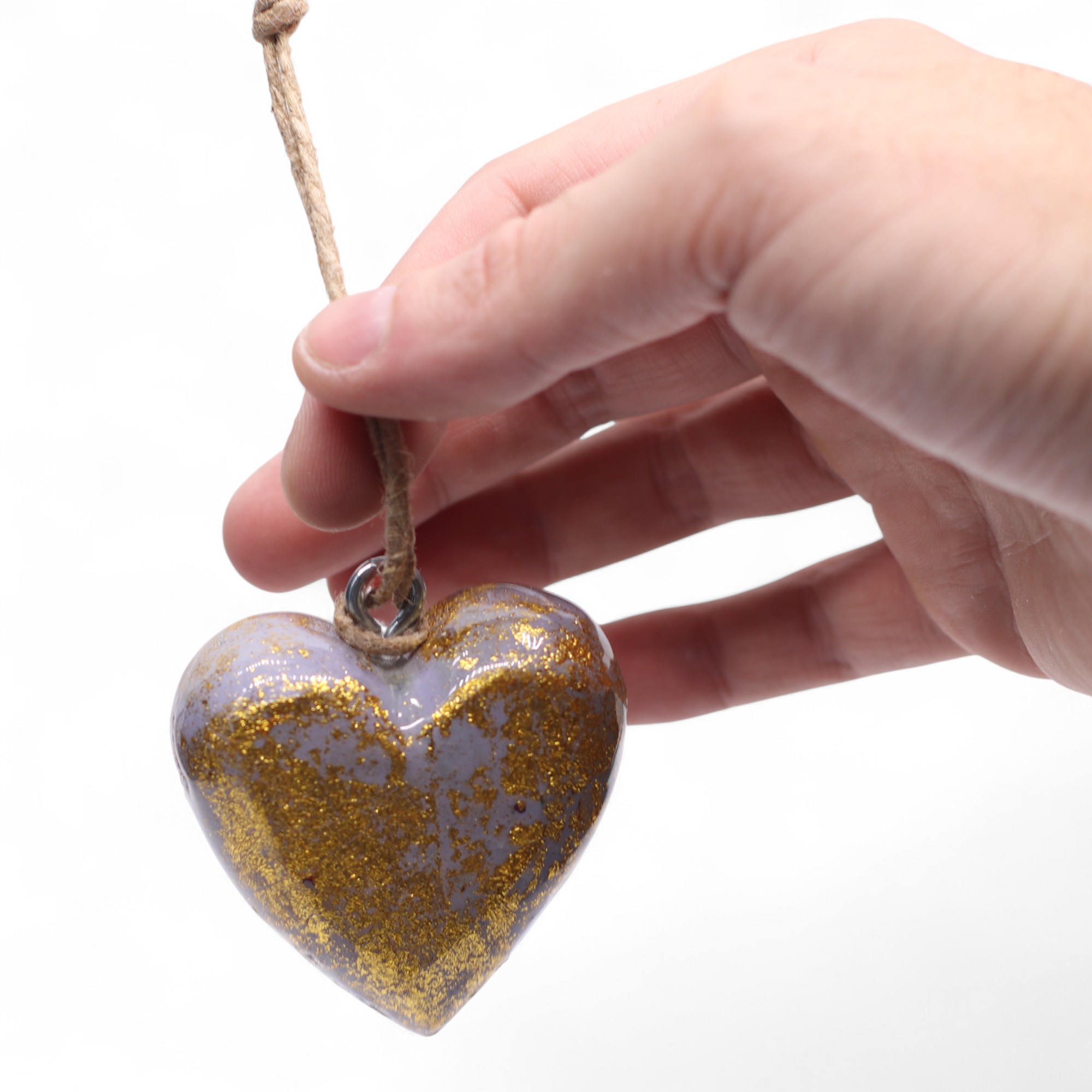 Zestaw 50 dużych, drewnianych serc z emaliowanym wykończeniem w eleganckiej lawendowo-złotej kolorystyce to stylowy produkt dla sklepów z dekoracjami. Serca charakteryzują się trwałością, starannym wykonaniem i subtelnym, przyciągającym wzrok wzorem.
